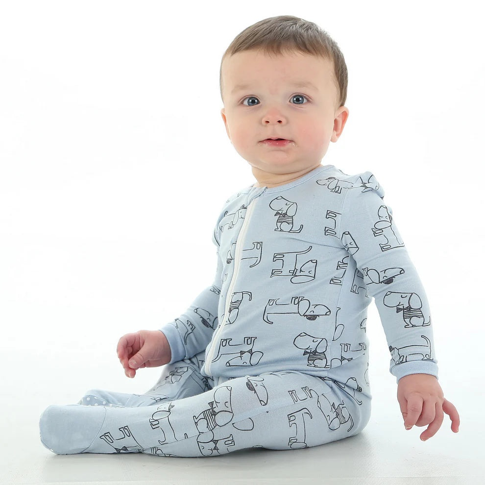Silberry Baby Dog Print Bamboo  Footies with Easy Dressing Zipper - Periwinkle Blue