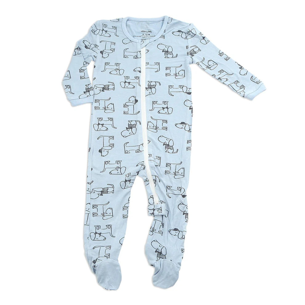 Silberry Baby Dog Print Bamboo Footies with Easy Dressing Zipper - Periwinkle Blue