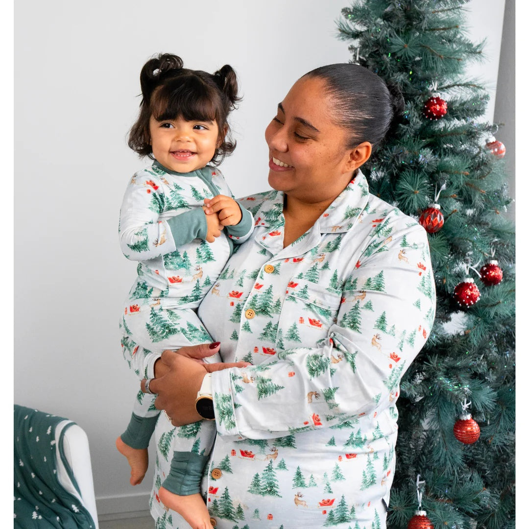 The fabric showcases our unique Sleigh Ride print, which has been digitally created. This cheerful design depicts a snowy sleigh ride through the woods. Sleigh Ride pairs perfectly with Santa Red and Leafy Green.