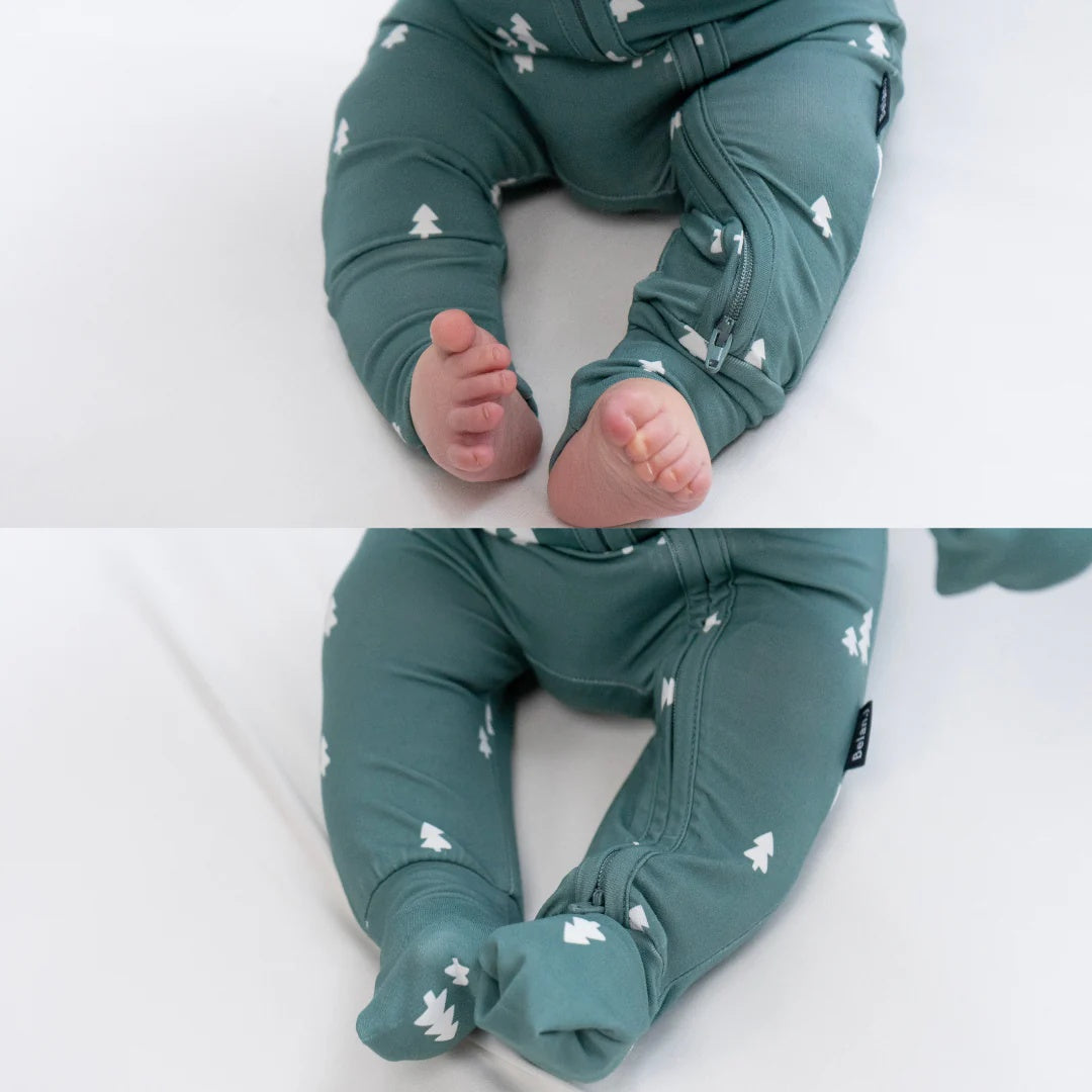 This footless sleeper is made from soft bamboo rayon, providing a comfy sleep for your little one. The breathable material wicks away moisture, making it perfect for baby sleepwear. With a 2-way YKK zipper, diaper changes are a breeze, and the fold-over cuffs along with a chin guard help prevent scratches. Plus, the fold-over foot cuffs keep those tiny toes warm on cold nights.