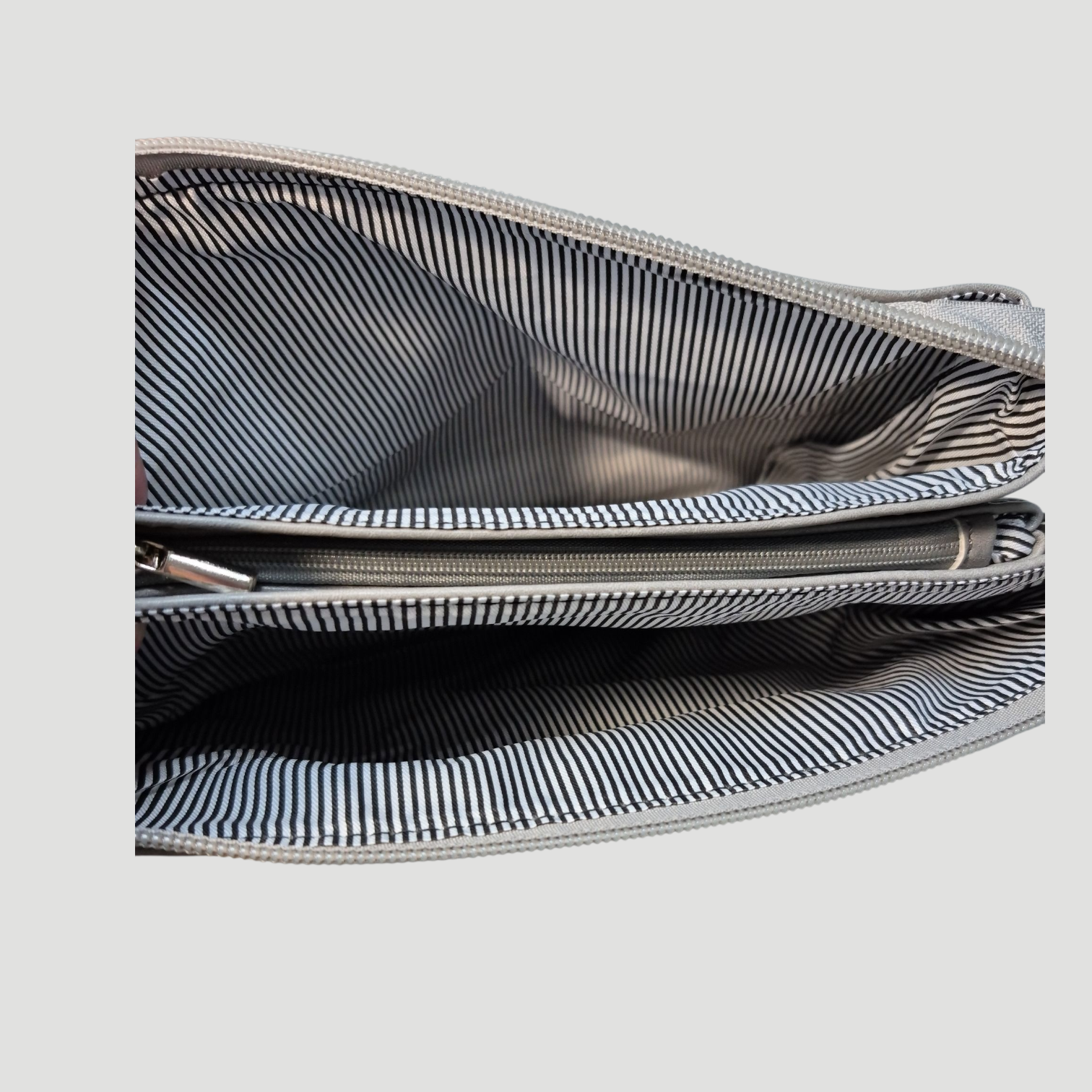 • 2 large, roomy pockets that close with a zipper and metal clip on the front