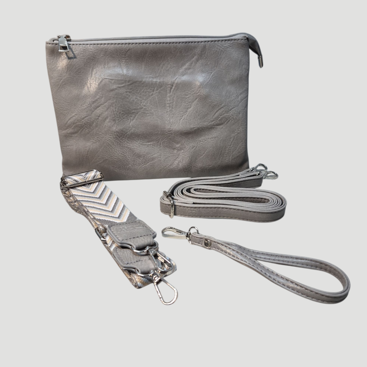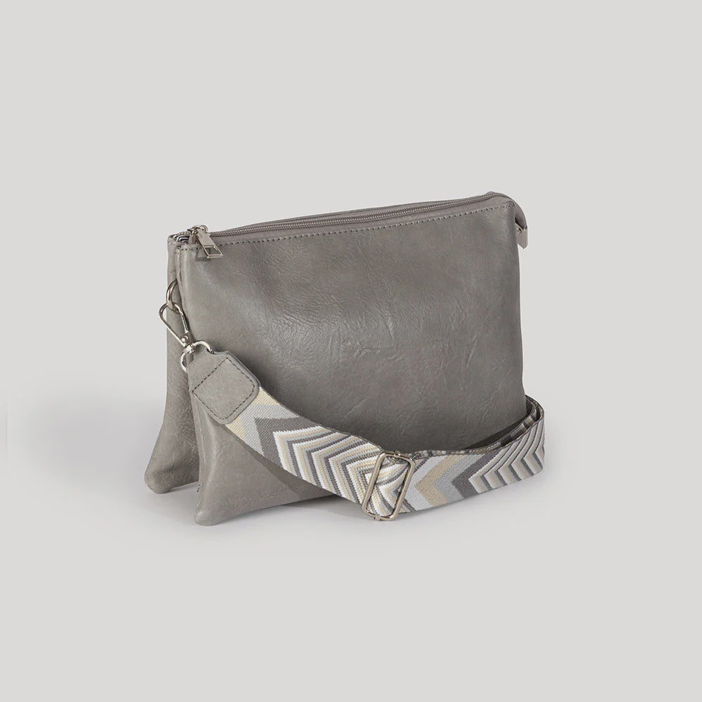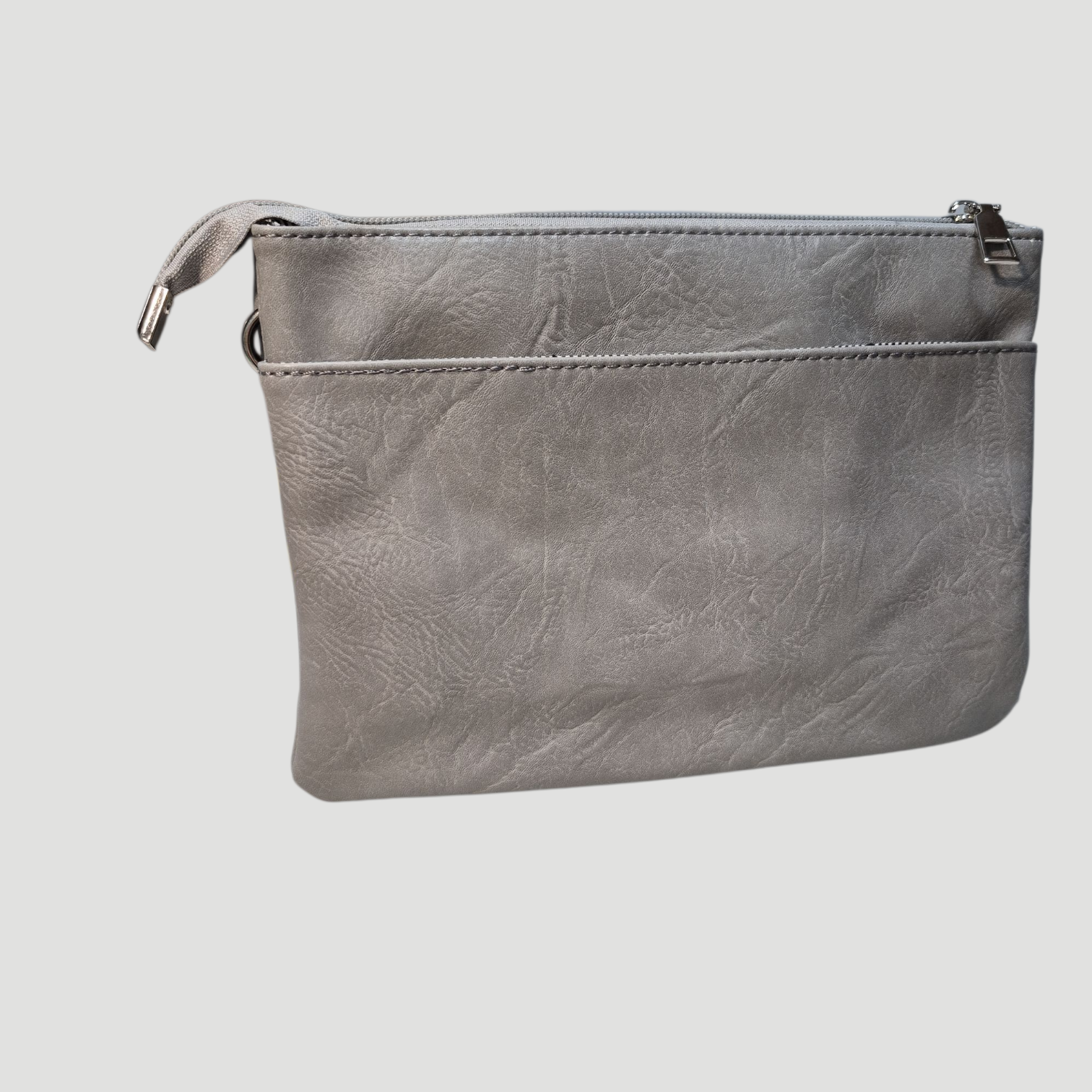 Caracol Large Triplet Faux Leather Crossbody Bag -7032E - Light Grey