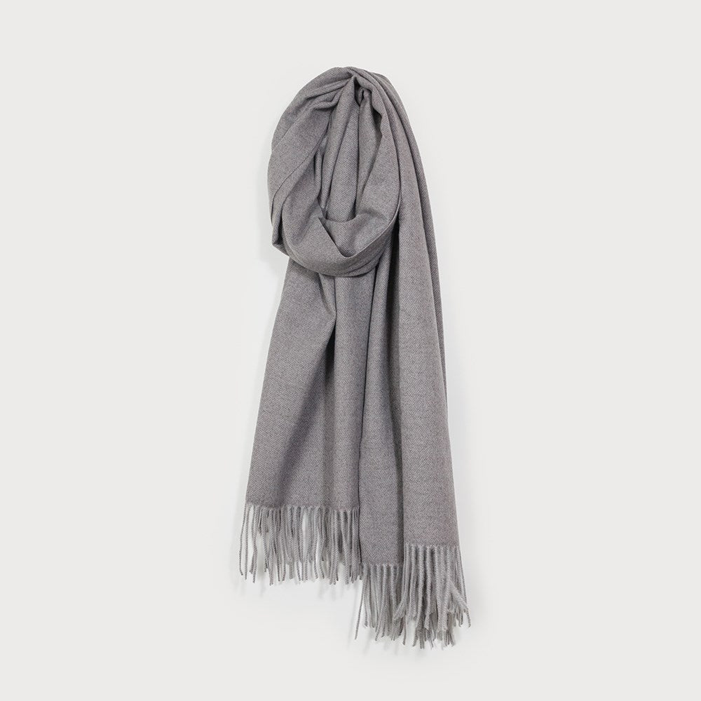 Get cozy with our solid scarf, a must-have that brings together heat, ease and style. Its big weave and big checks give it an old-time feel, but one that works for now. What else? Thick enough to fend off the bitter winds, it can be wrapped around your neck or hung over your shoulders like a wrap. Its long fringes add the finishing touch to this cocoon of softness.