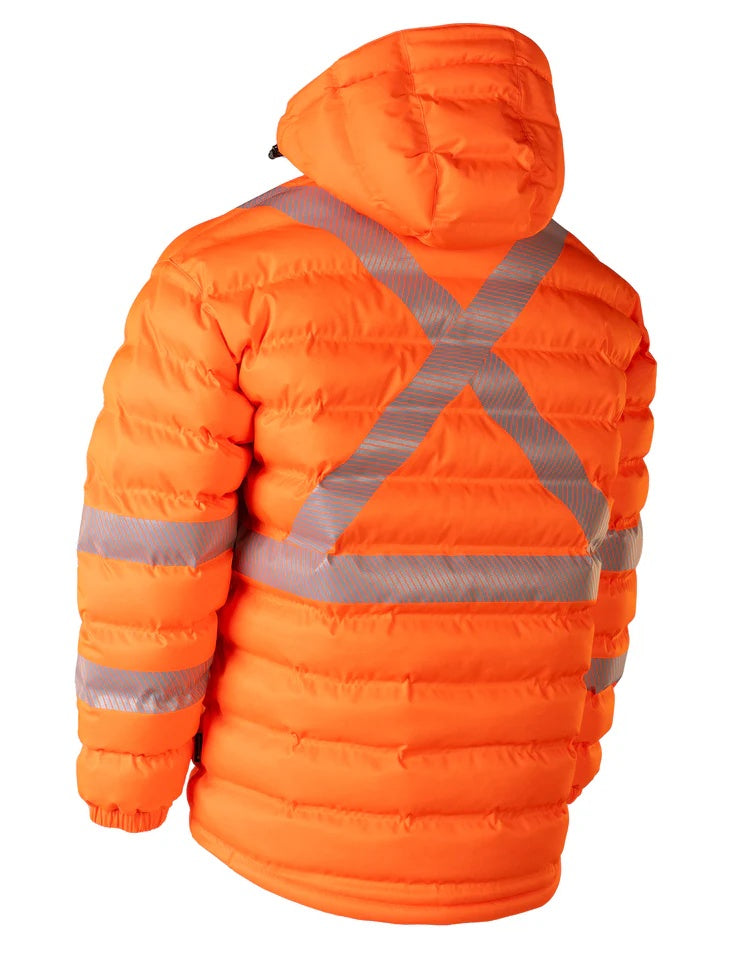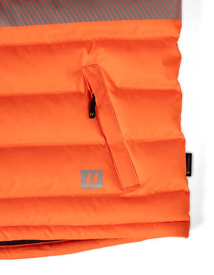 This high-visibility puffer jacket keeps you safe, warm, and protected at work. It meets safety standards, lasts a long time, and handles any weather. You can focus on your job without worrying about the elements.