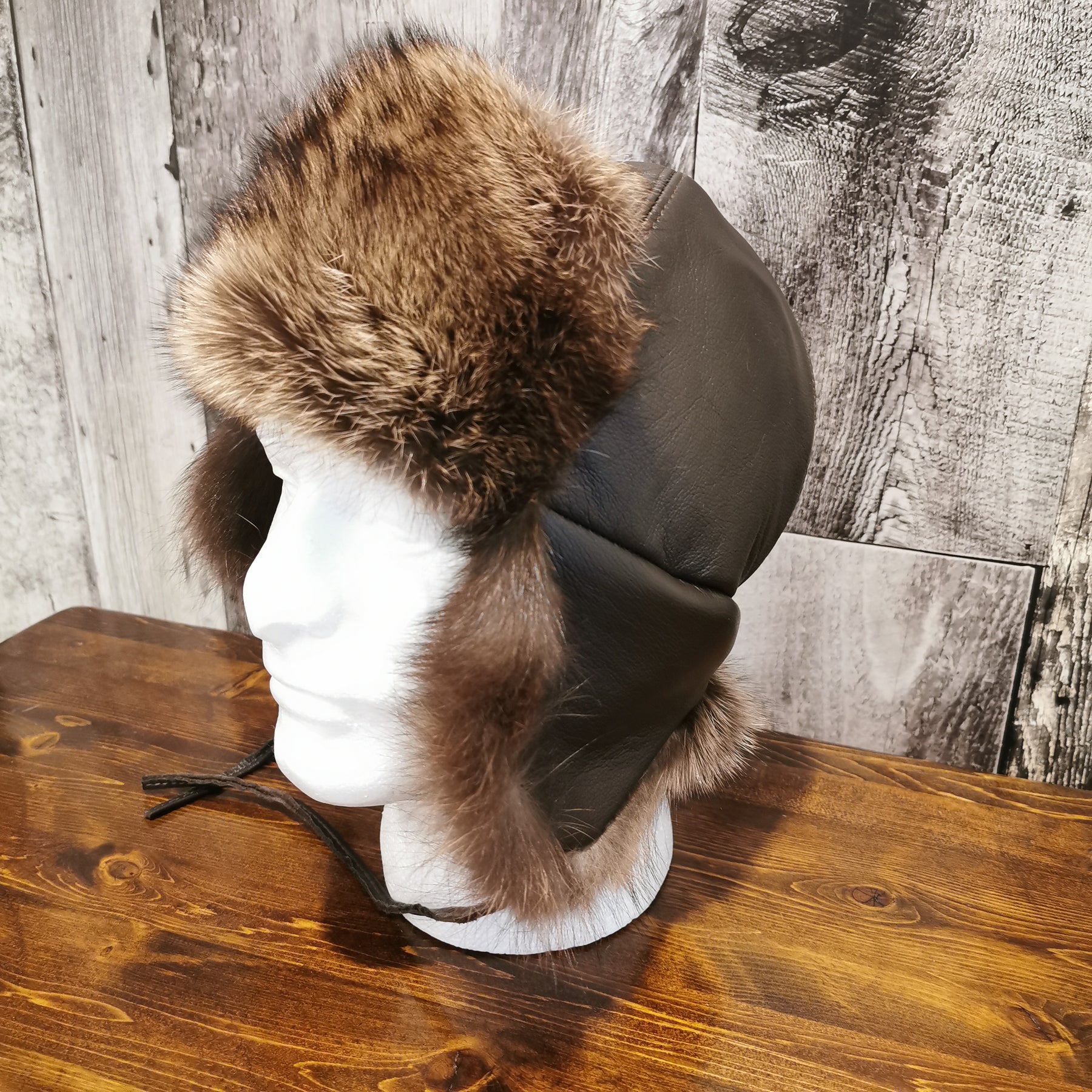 These stylish Fisher fur trapper hats will keep you warm in winter. They use real leather and genuine fisher fur. Fisher fur stands out from other brown furs. It has longer, knappy hair with a shiny glow. We craft them from male fishers, so colors vary a bit. The aviator design lets you tie the flaps up for a casual look or drop them down for extra protection. Pick based on your style or needs.