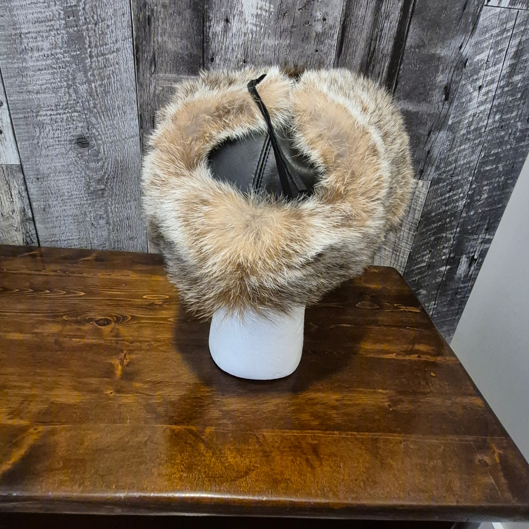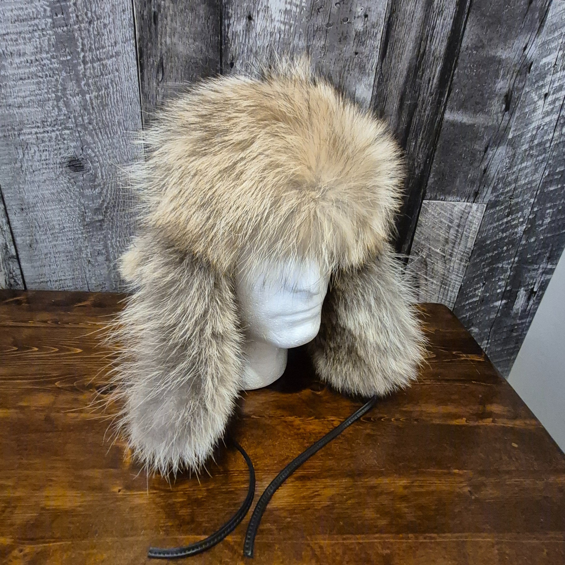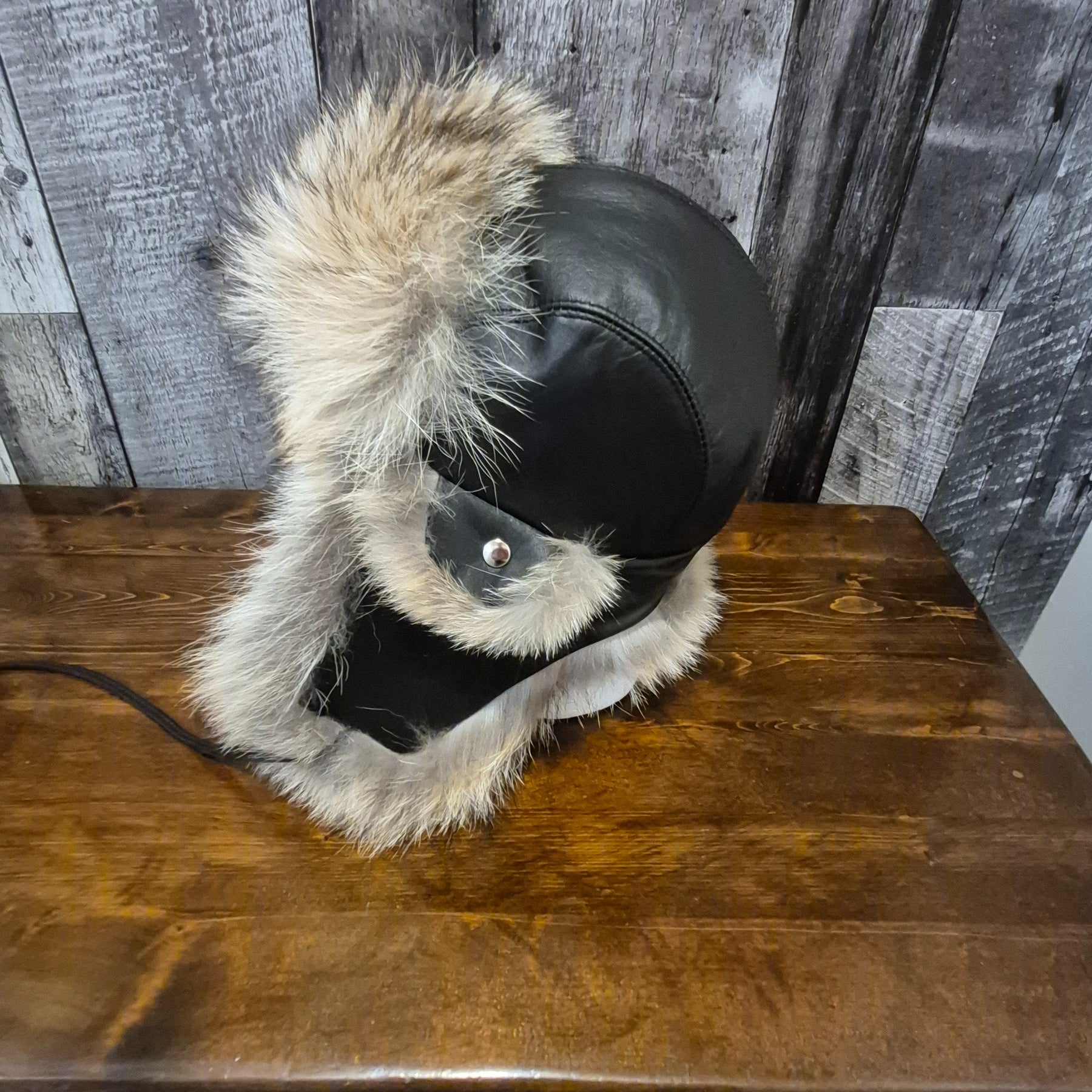 Fourrures Audet Natural East Canada Coyote Fur Aviator Hat with Antique Leather