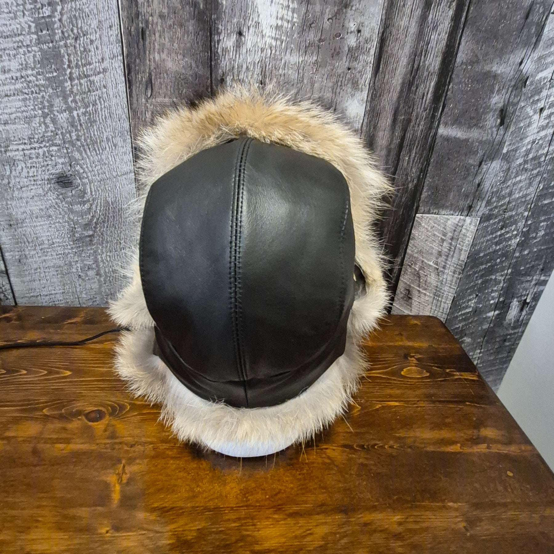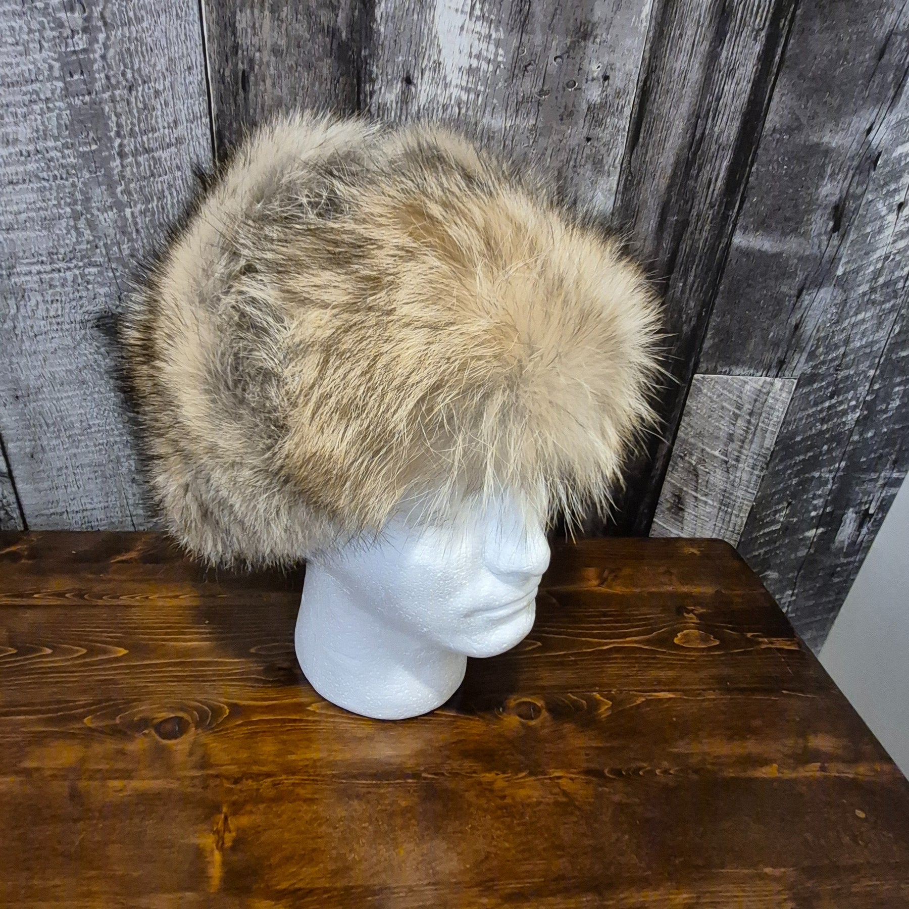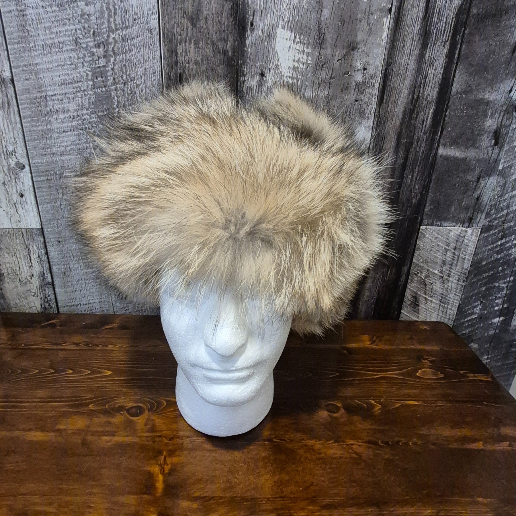 Fourrures Audet Natural East Canada Coyote Fur Aviator Hat with Antique Leather