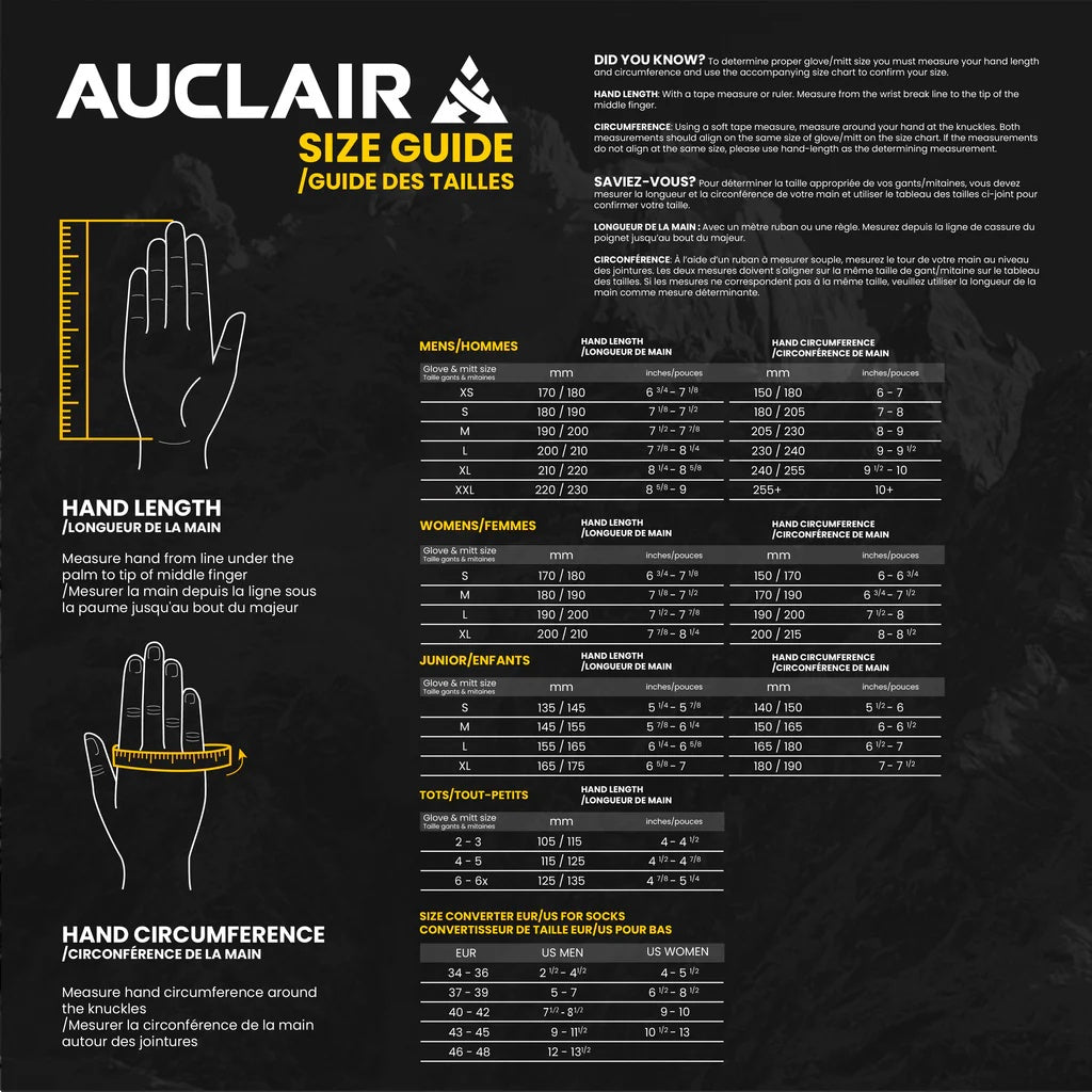- Membrane: Auclair-Dry Silver breathable, Waterproof, Windproof