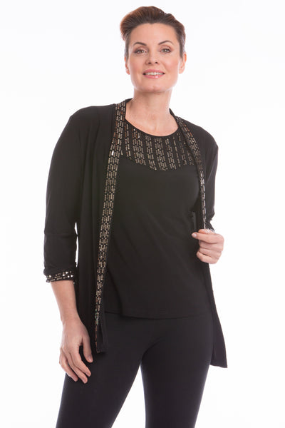 Kleio Women's Sequin Trim Tank Top and Cardigan 2PC Set - Black