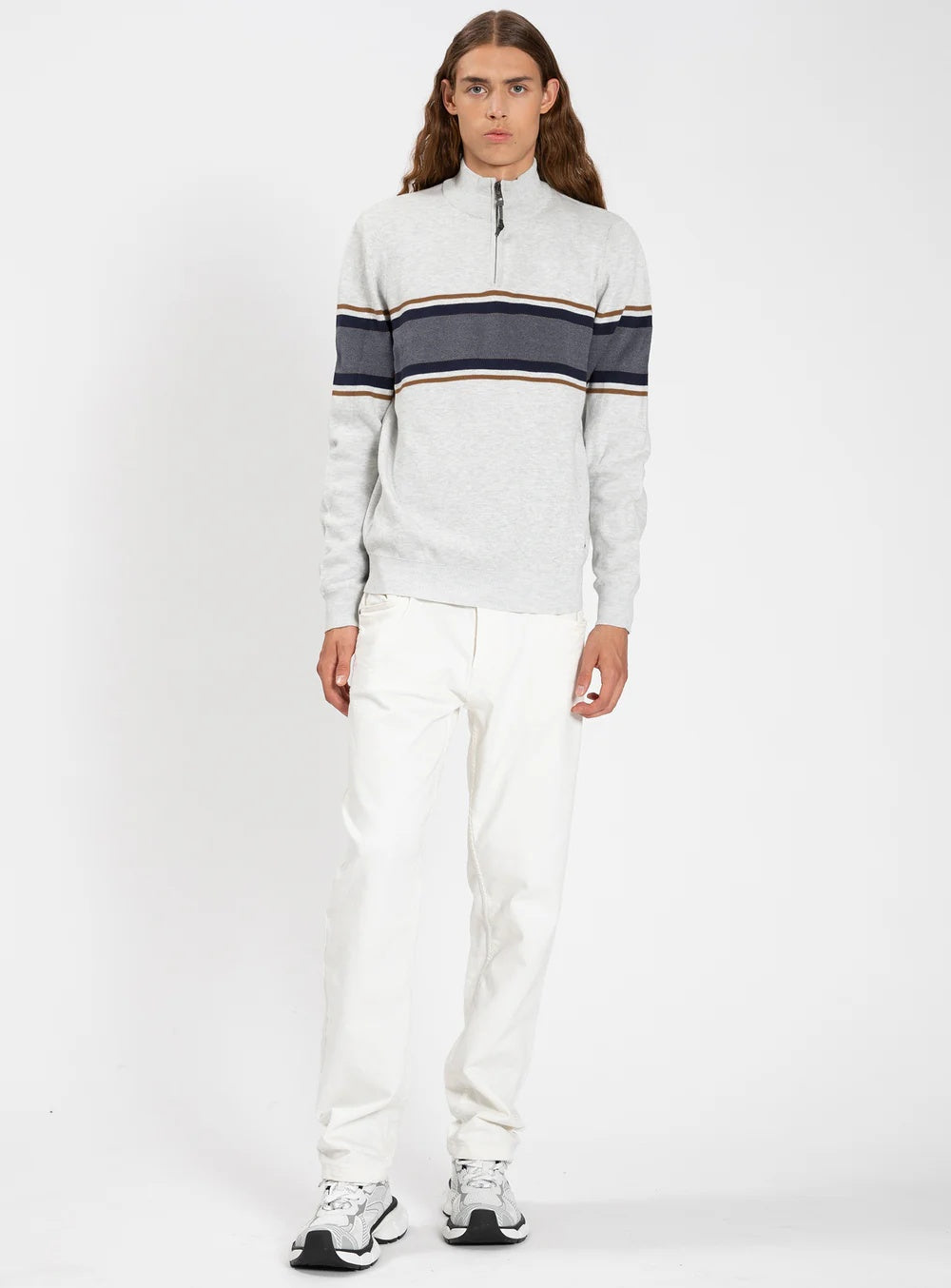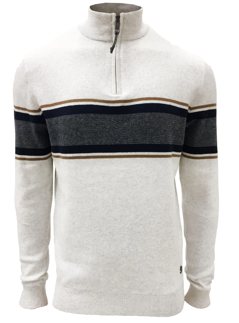 Step up your winter outfits with this cool fine-gauge sweater. It rocks a striking jacquard stripe across the chest. Crafted from pure cotton, it gets a silicone wash for top-notch softness, easy breathing, and lasting coziness. The mock neck comes with a zip for a fresh look. Its semi-fitted cut flatters your shape and layers without a hitch.
