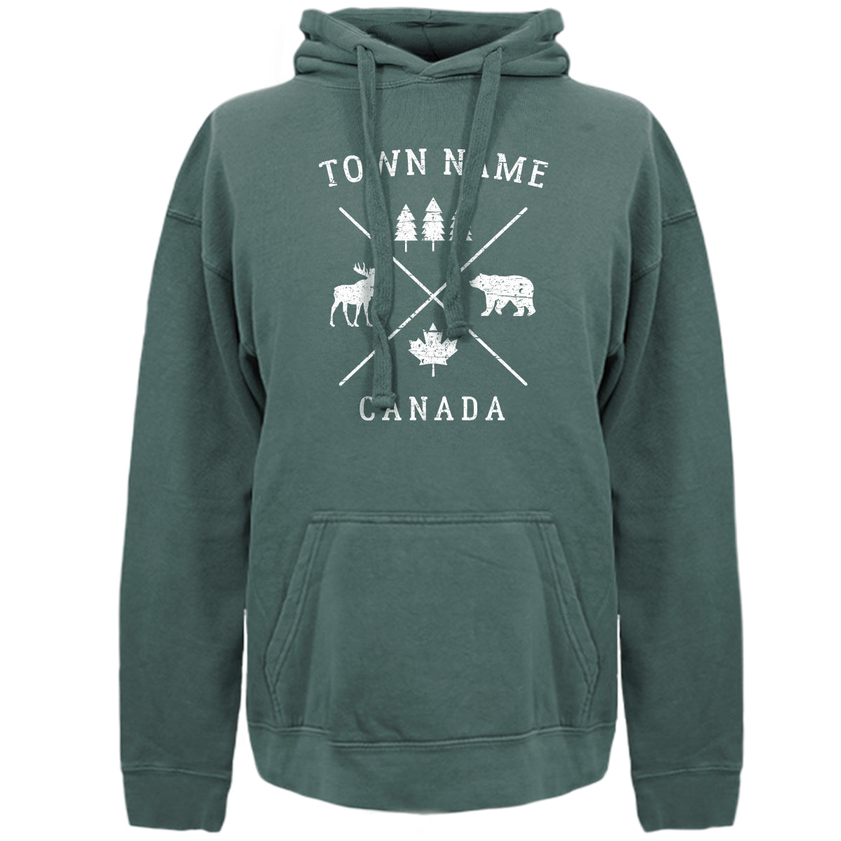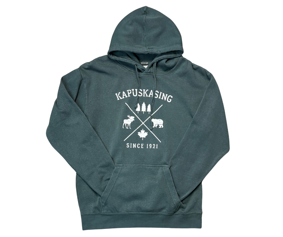 Kapuskasing Crossed X Icons Garment Dye Adult Hoodie - Green