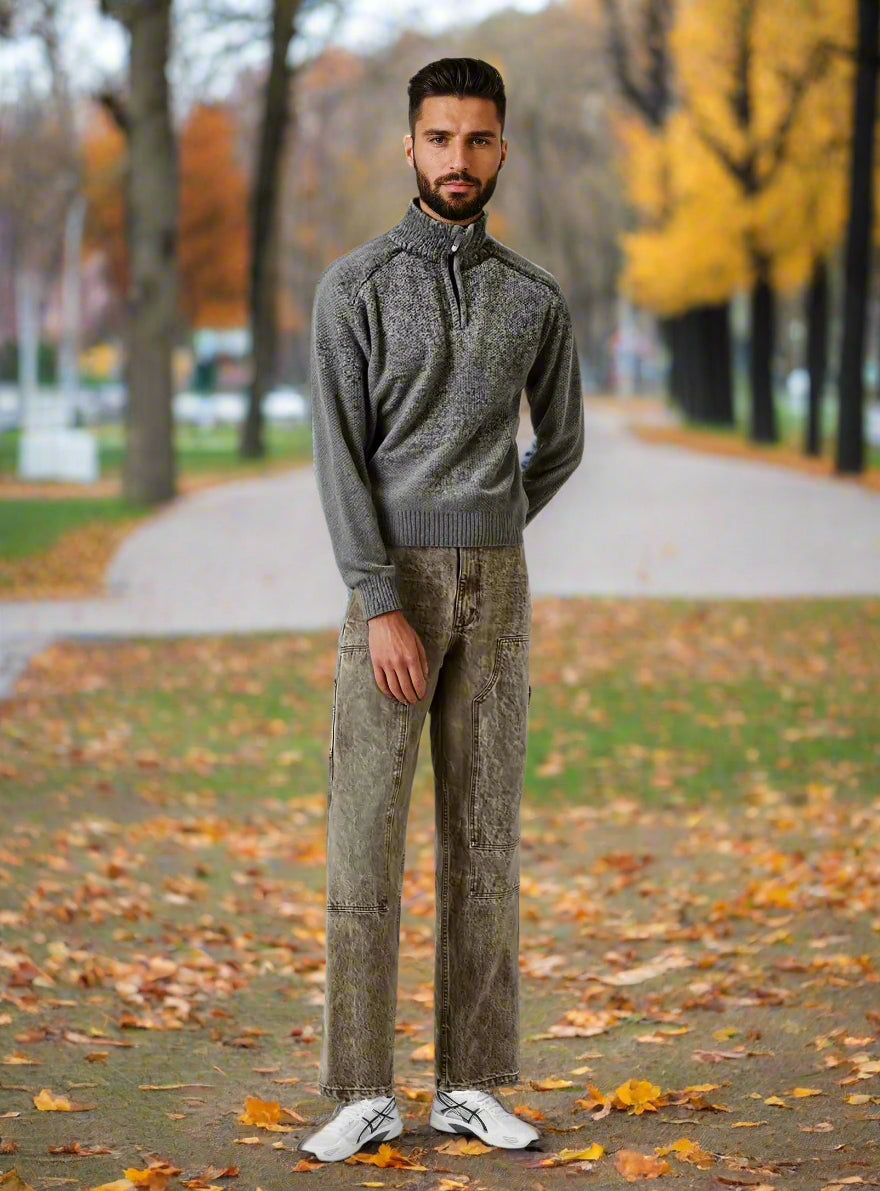 Point Zero Men's CHARLES Fleece Lined 1/4 Zip Mock Neck Sweater - Grey