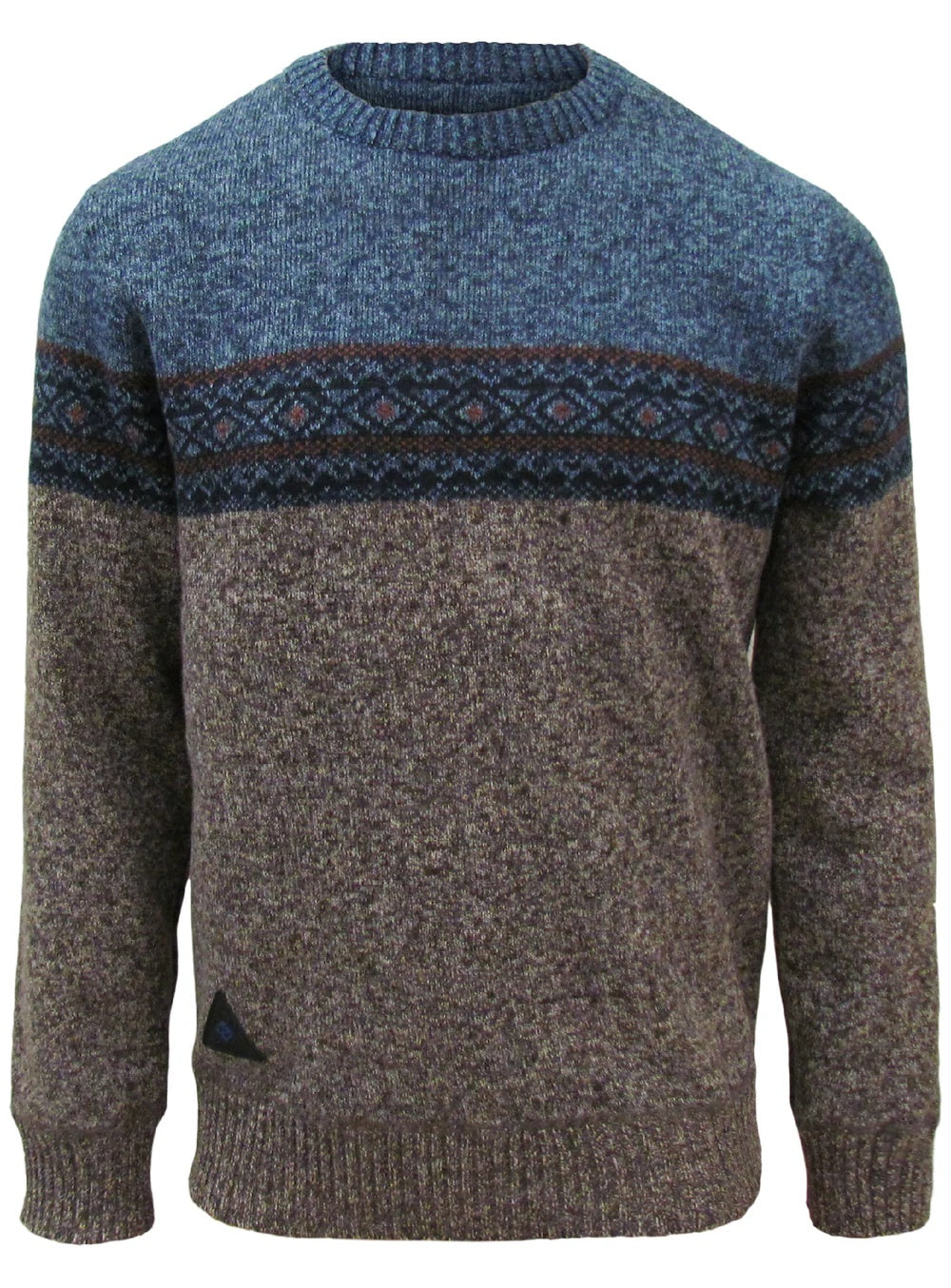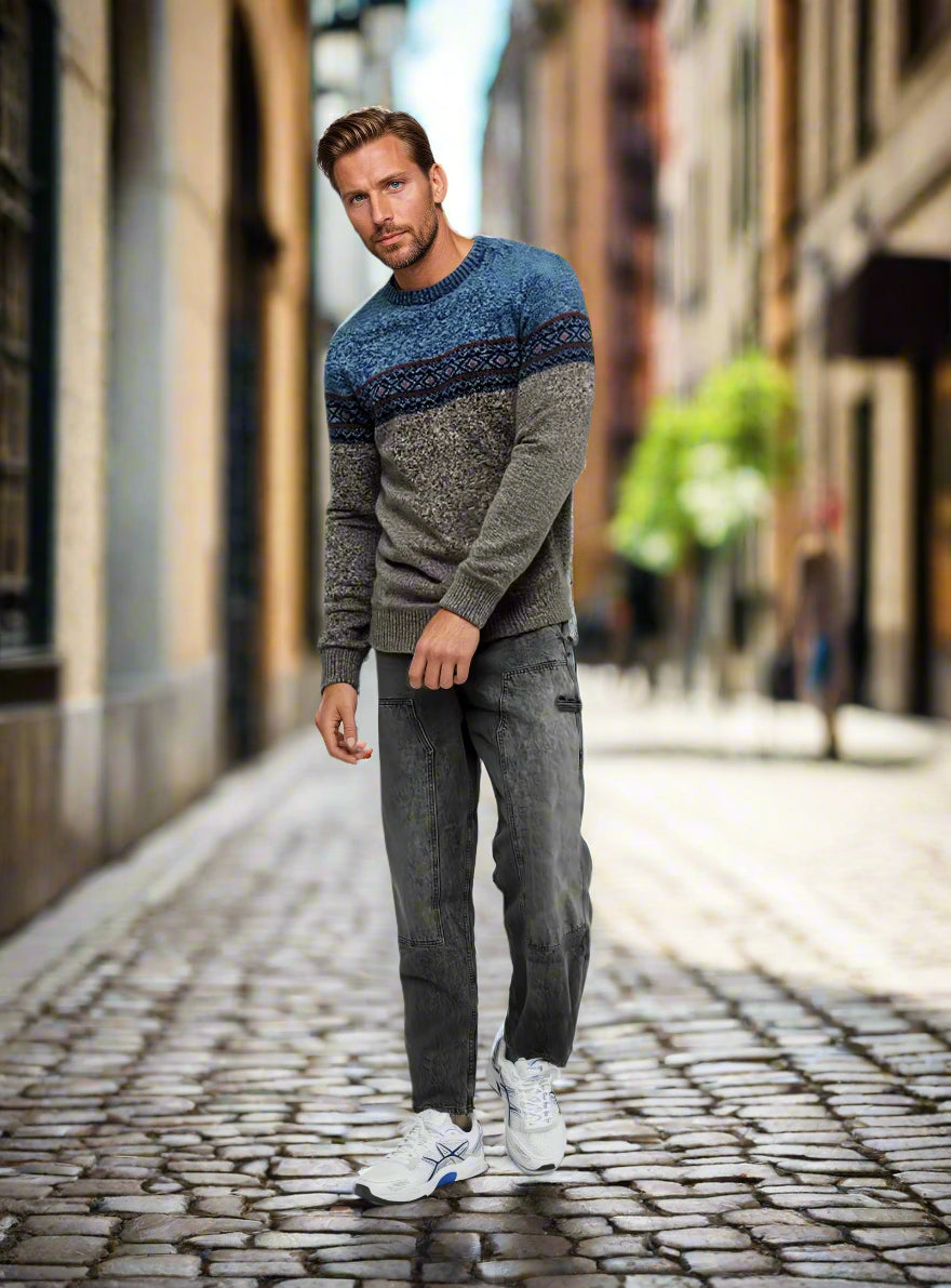 Stay warm in style with this semi-fitted men's sweater featuring a classic crew neck and eye-catching jacquard design. Made from 100% recycled polyester and lined with polar fleece for extra warmth and softness, it's ideal for layering in cold weather or casual wear, blending comfort, eco-friendliness, and style.