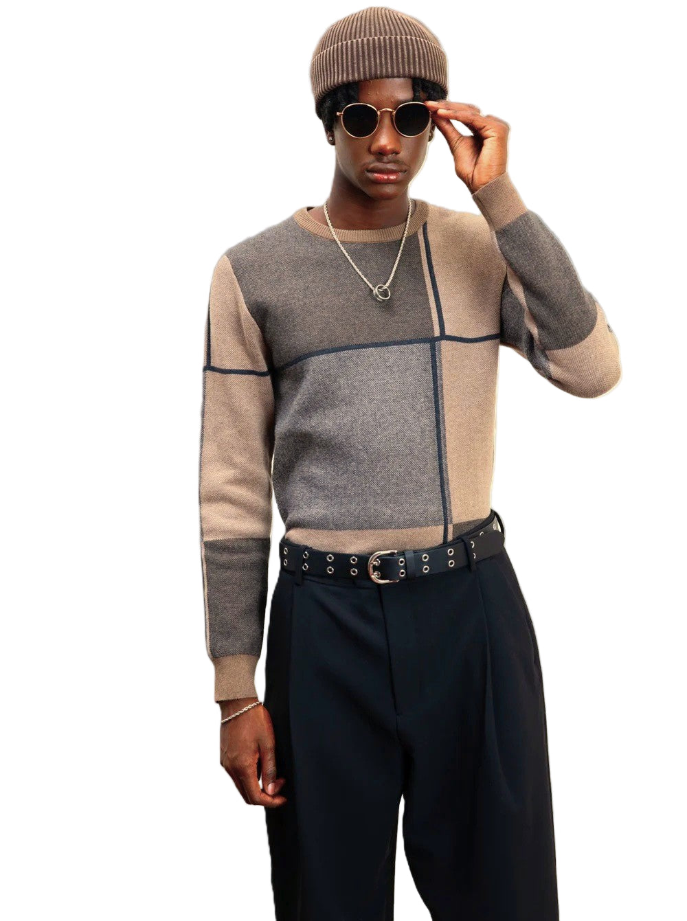 This geometric color block sweater combines comfort, style, and versatility in a bold design. Its contemporary look features eye-catching geometric patterns that enhance its fashion appeal. Ideal for everyday wear or special occasions, its unique design ensures it stands out, appealing to those who appreciate style and practicality.
