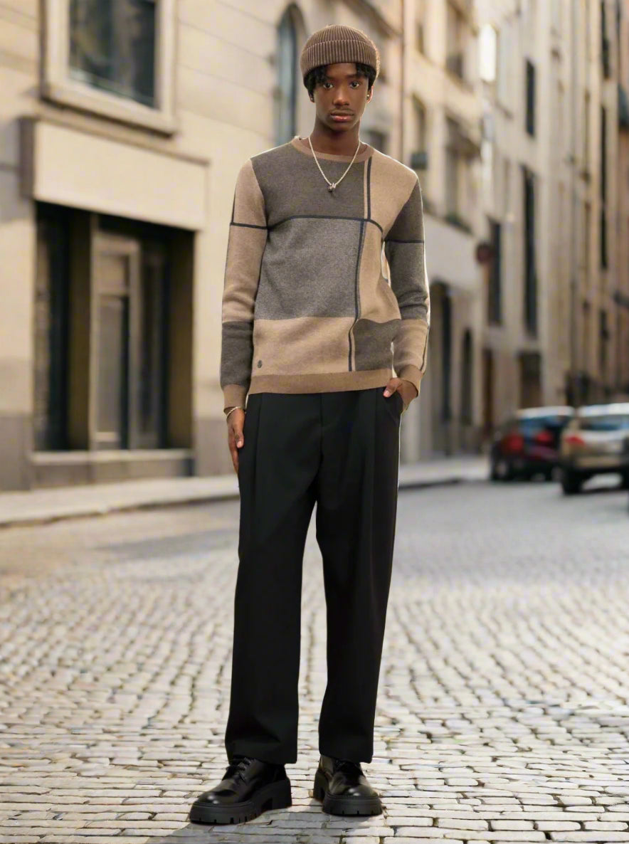 Point Zero Men's TADD Color Block Geometric Sweater - Mud Mix