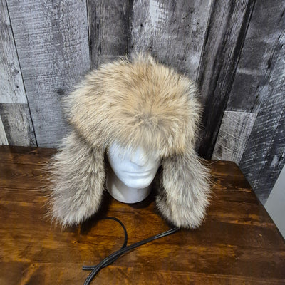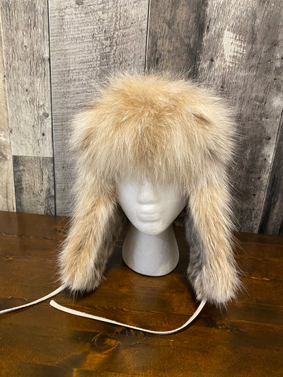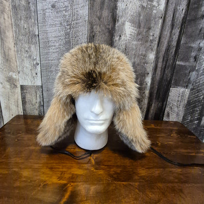 Fourrures Audet Natural East Canada Coyote Fur Aviator Hat with Antique Leather #600- Antique Dark Brown