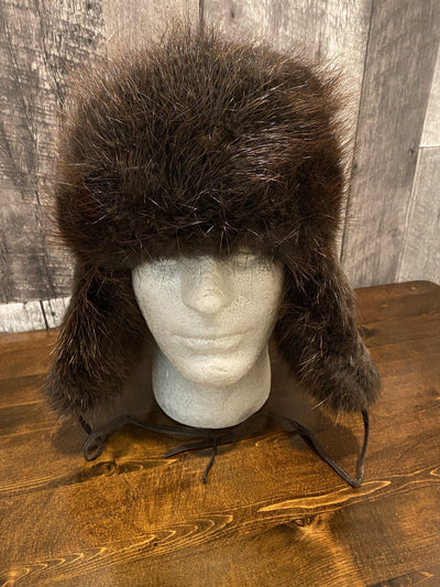 Fourrures (Furs) Audet Sheared Beaver Fur and Leather Aviator Hat #600 - Dark Brown