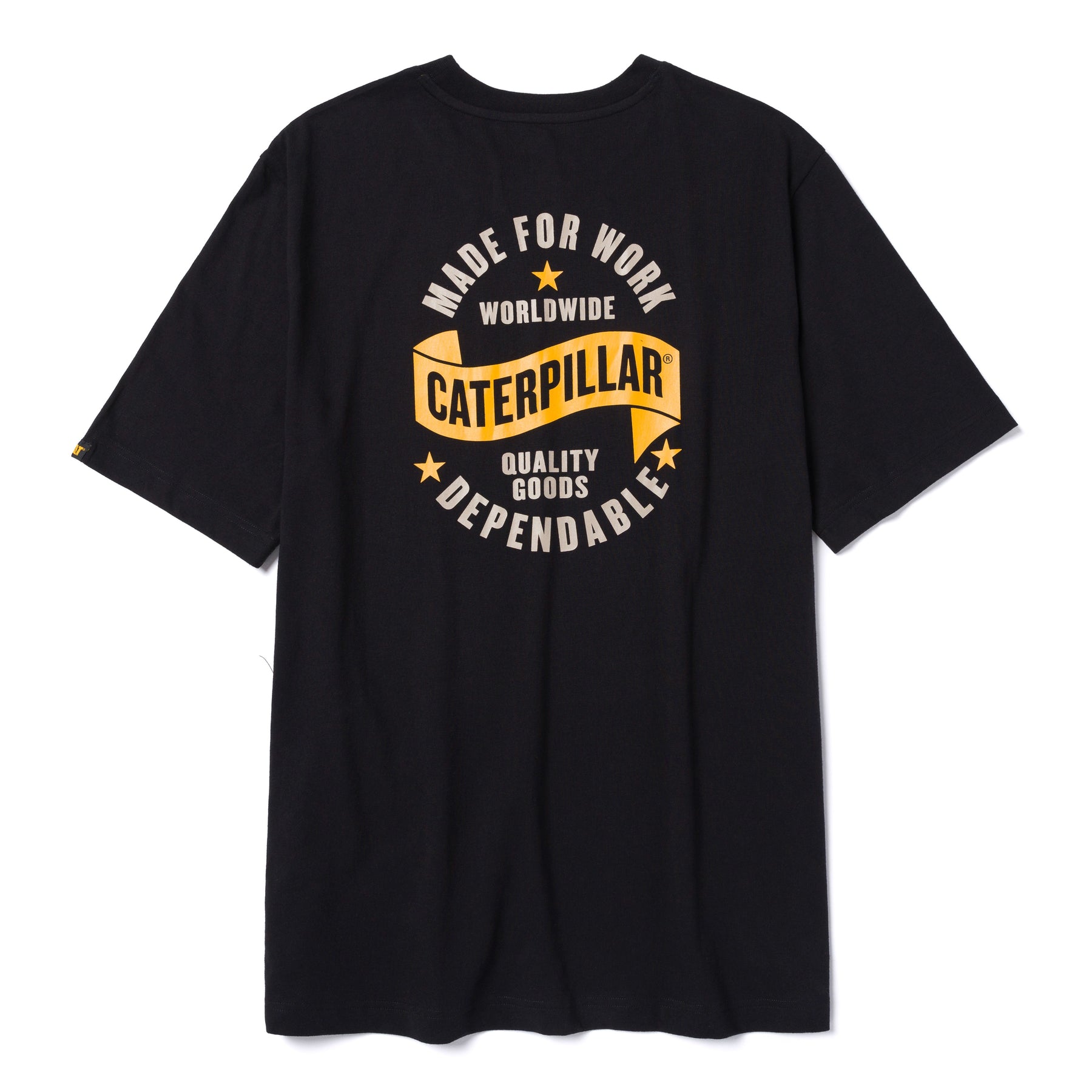 Flag graphic t-shirts: Show your love for your country with this CAT Workwear graphic tee that has a worn-out flag design. Plus, there's a CAT logo label on the left sleeve hem for that extra flair. Made for comfort, this tee features a tagless back neck to keep you irritation-free.
