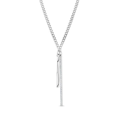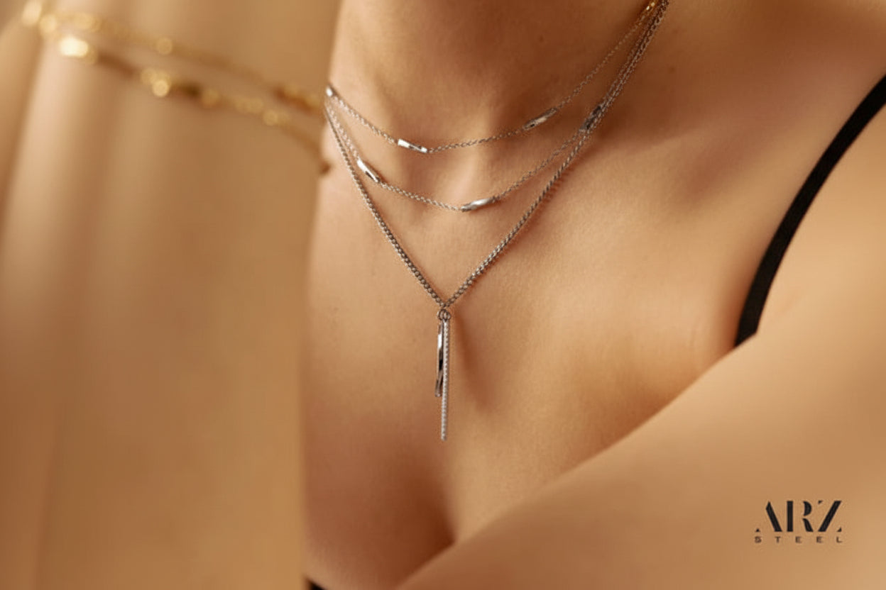 This necklace has a sleek dual bar design. One bar twists, 23mm long. The other sparkles with cubic zirconia stones, 38mm long. Both bars stay slim at 2mm wide. It looks delicate but grabs attention. A tough 2mm Cuban chain holds it, adjustable from 17 to 18 inches. Adds a 1-inch extender if needed. It adds shine and fresh style to outfits. Perfect pick for your jewelry box.