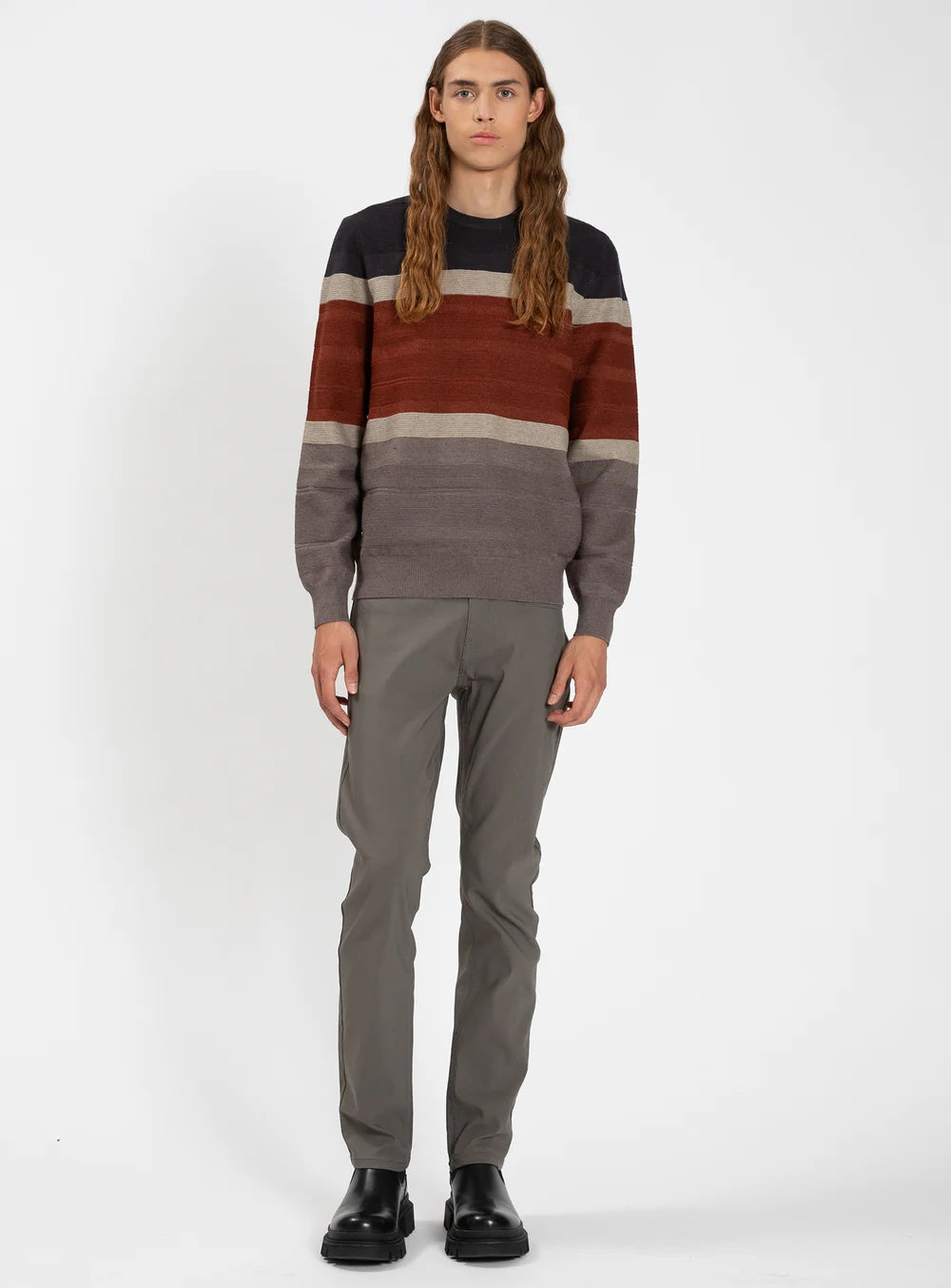 Our Cashmere-Touch Raised Stripe Sweater boosts your daily outfits. It uses a fine knit fabric that feels soft like cashmere. The design has raised horizontal stripes for a mix of texture and color. This semi-fitted pullover stays warm yet light. Wear it alone or layer it up. A simple crew neck and ribbed edges add a classic touch with fresh style.