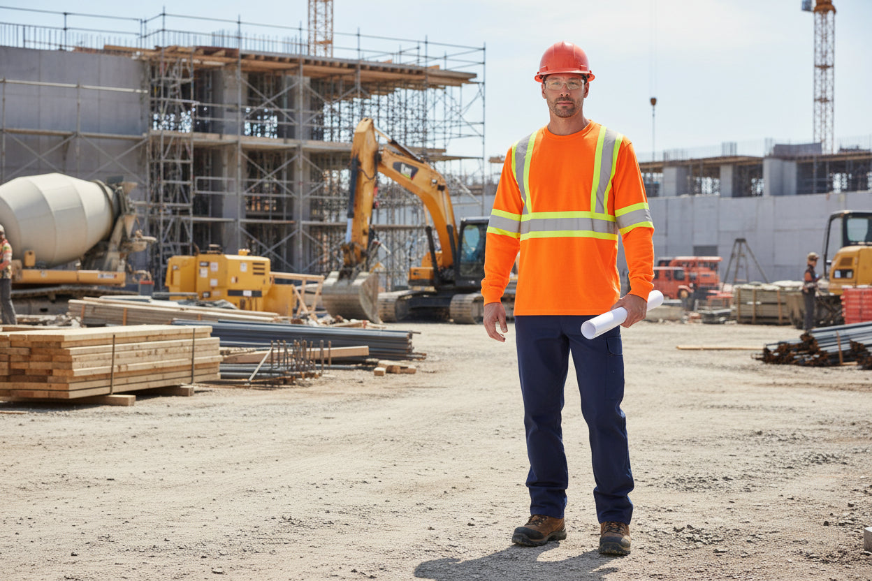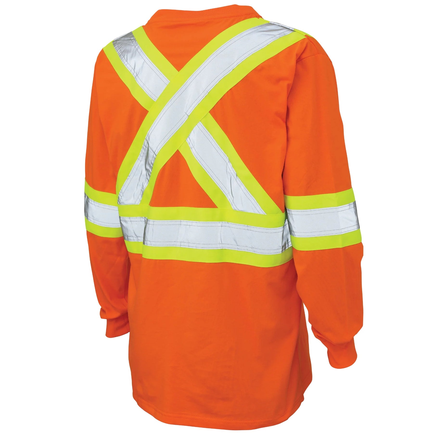 This long-sleeve safety tee lets air flow for breathable workwear. Soft cotton keeps you comfy all day. Bright reflective strips with 4-inch backing ensuring visibility in low-light conditions. Rib-knit crew neck fits snug. It suits jobs or outdoor fun. Comfort pairs with top safety.