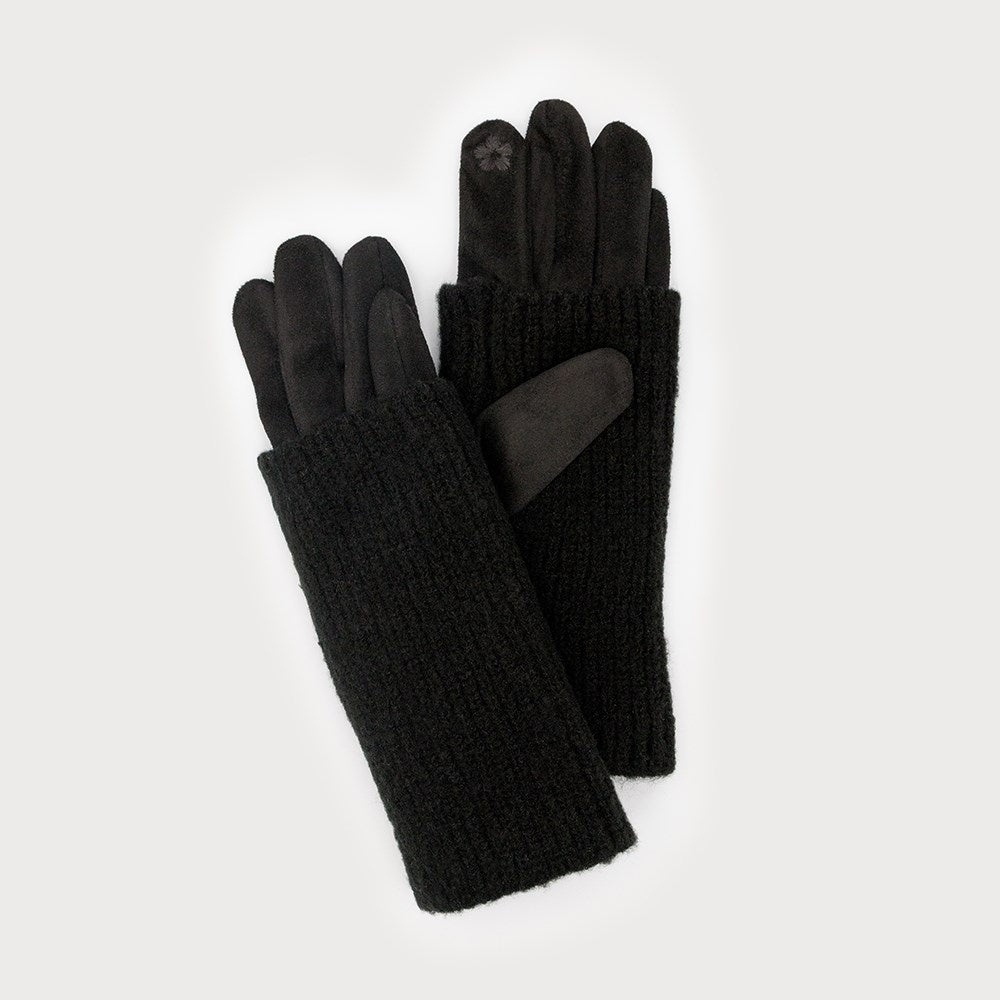 Caracol Women's 2 in 1 Ribbed Wrist-warmer Faux Suede Gloves - Black