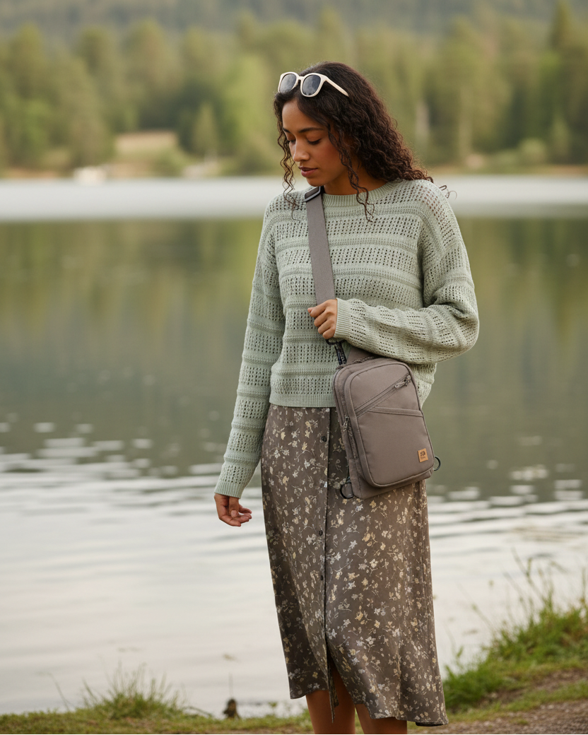 Say hello to your new travel buddy. Heading to work? Out for a day with pals? This sling bag is perfect for that, featuring dual zipper pockets, a pouch for a water bottle that you can pack away, and a special place for your sunglasses.