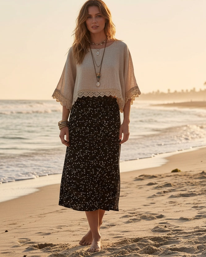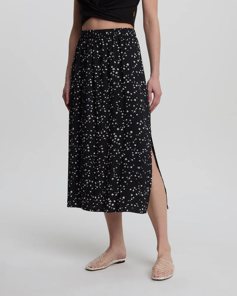 This pull-on printed skirt is crafted from fibers that are not just silky soft and breathable, but also contribute to reducing waste and water consumption in the clothing industry.