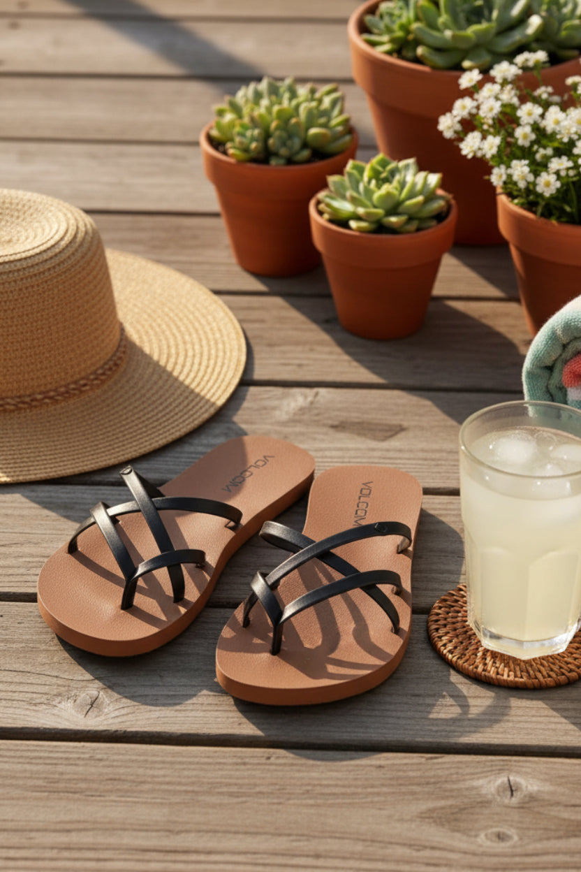 VOLCOM'S WOMEN'S NEW SCHOOL II SANDALS - Black/Tan