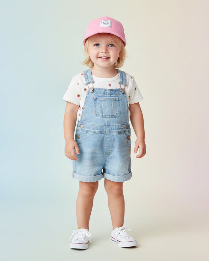 Our signature cap is made for kids aged 6 to 18 months and 2-4 years old. Crafted from sturdy cotton twill, this lightweight design includes mesh ventilation panels to help keep them cool.