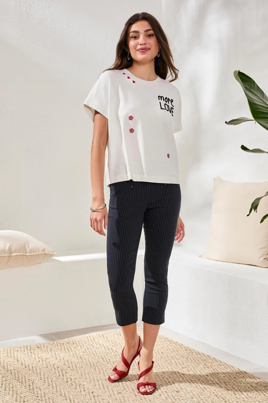This crew neck cap sleeve top is made from lightweight French terry, giving it a soft and breathable vibe. The embroidery details bring a fresh, modern flair, and the relaxed fit guarantees comfort and style throughout the day. It's ideal for easy layering or wearing on its own for a chill, upscale appearance.