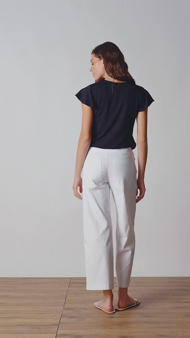 A super feminine way to upgrade your style this season, the ruffle-sleeve top adds a playful boho-chic vibe to any outfit. With its sleek cut and laid-back V-neck, it’s a romantic fashion choice that even the most minimalist dressers will love.