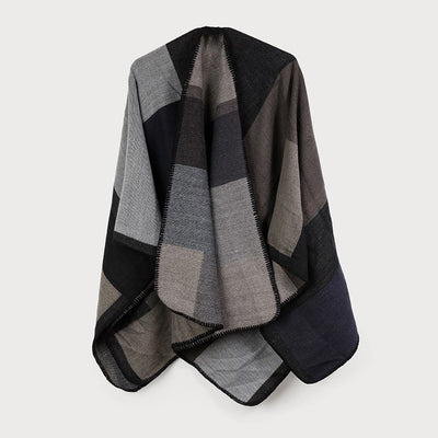Caracol Women's Large Colorblock Shawl/Poncho - Grey, Cam