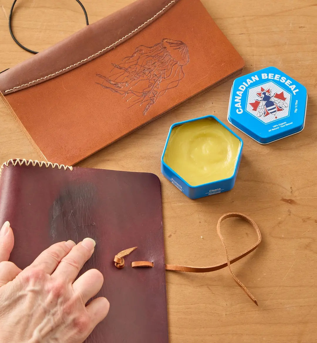 • 2 signature Canadian Beeseal tins (75g) – To rejuvenate and waterproof, made with all-natural beeswax and essential oils.
