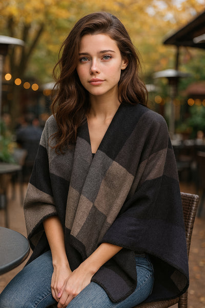 Caracol Women's Large Colorblock Shawl/Poncho - Grey, Cam