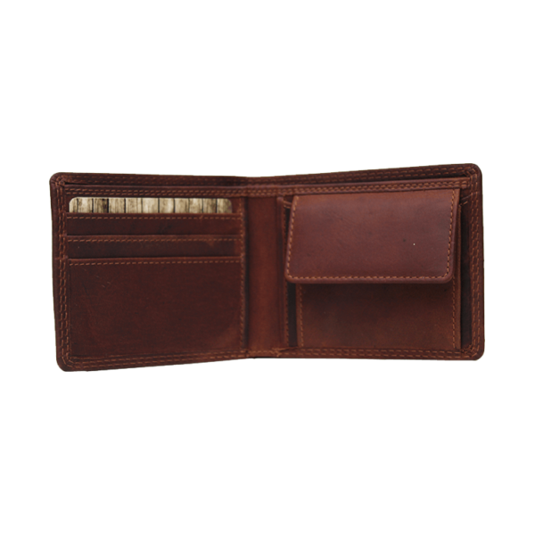 Rugged Earth builds a sturdy full-grain leather wallet. It takes daily beatings without fail. The leather comes from the cow's tough outer layer. Strength and texture stay put. This classic billfold holds cash flat inside. A coin pocket traps loose change. No spills. Slots fit cards, IDs, and more. A divider sorts big bills from small. Grab what you need quick. Slim enough for pocket or bag. Leather softens over time. It holds up for years. Just wipe it clean and oil it sometimes. Works great for work, trips, or runs. Simple design. Pure quality.