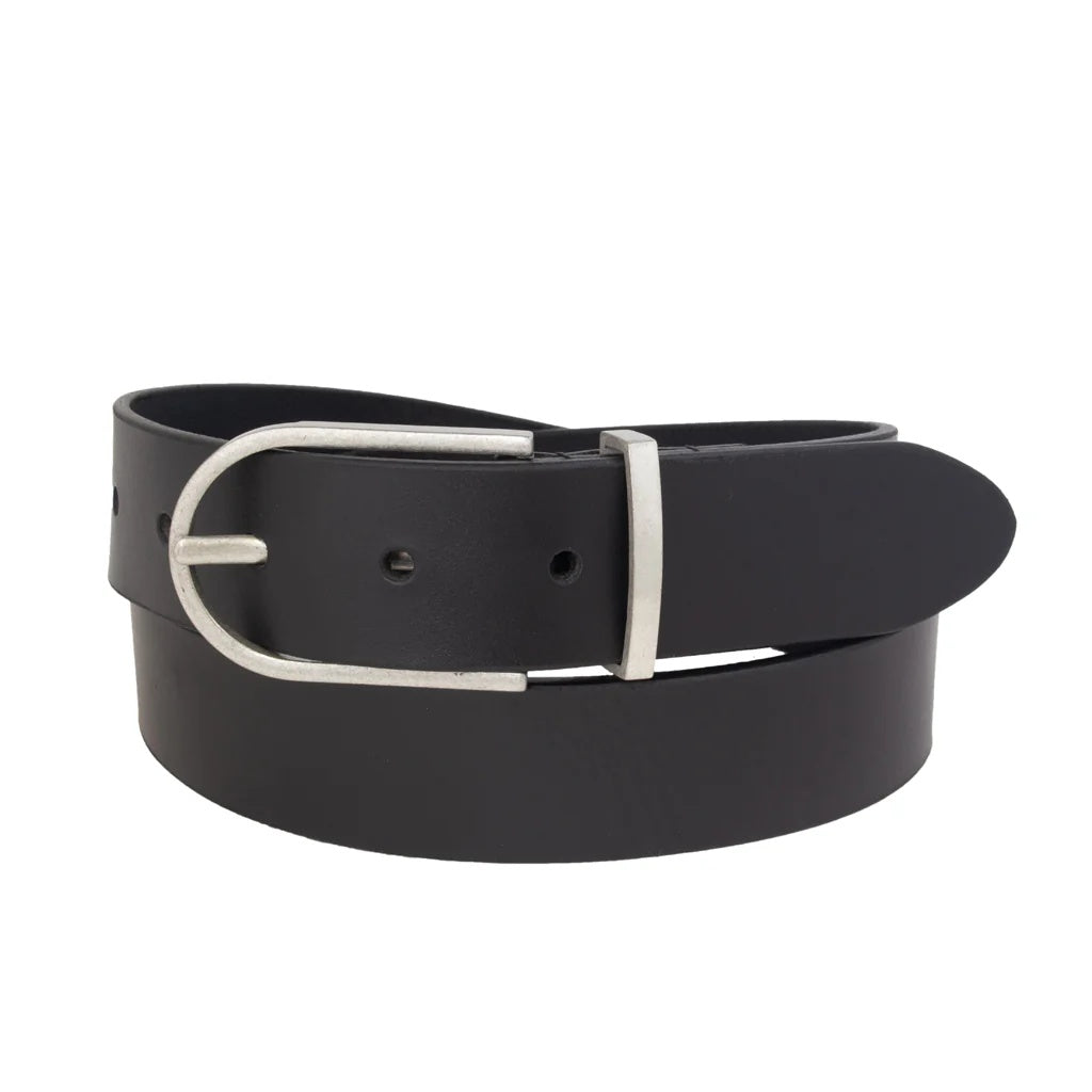 Silver Jeans Women's Metal Loop Refined Heavyweight Genuine Leather Belt- Black