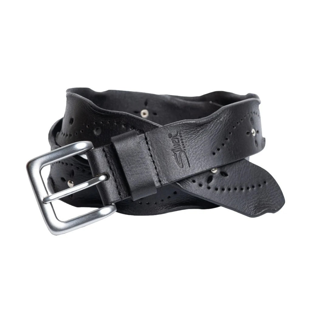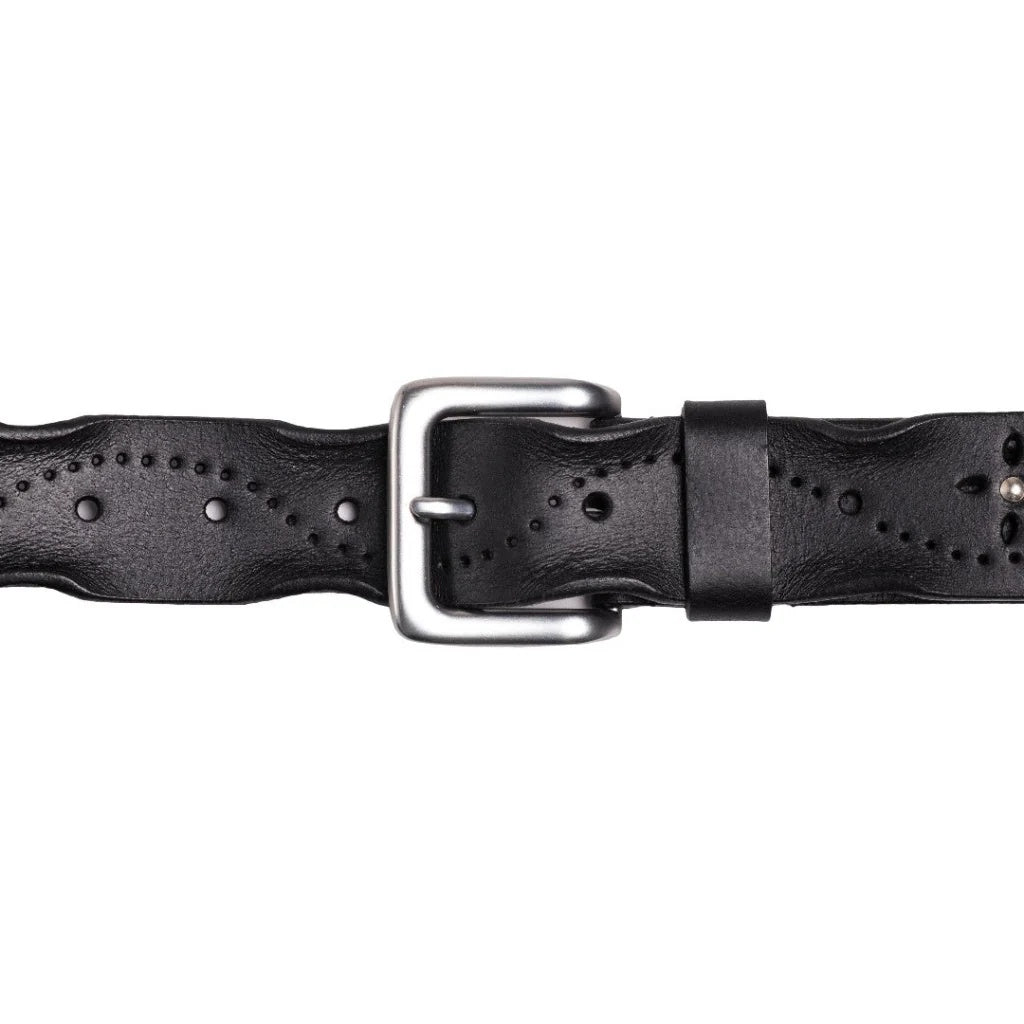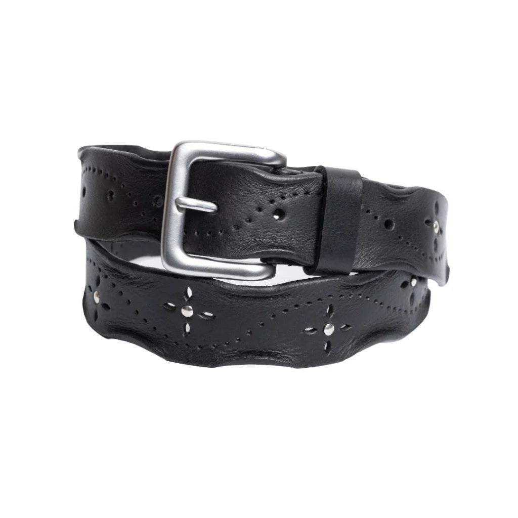This genuine leather belt is a must-have for busy girls. Sleek and smooth, it's perfect for both the office and casual weekends. Discover the Silver Jeans 35MM Women's Genuine Leather belt with a worn edge, perforations, stud details, and an antique nickel harness buckle.