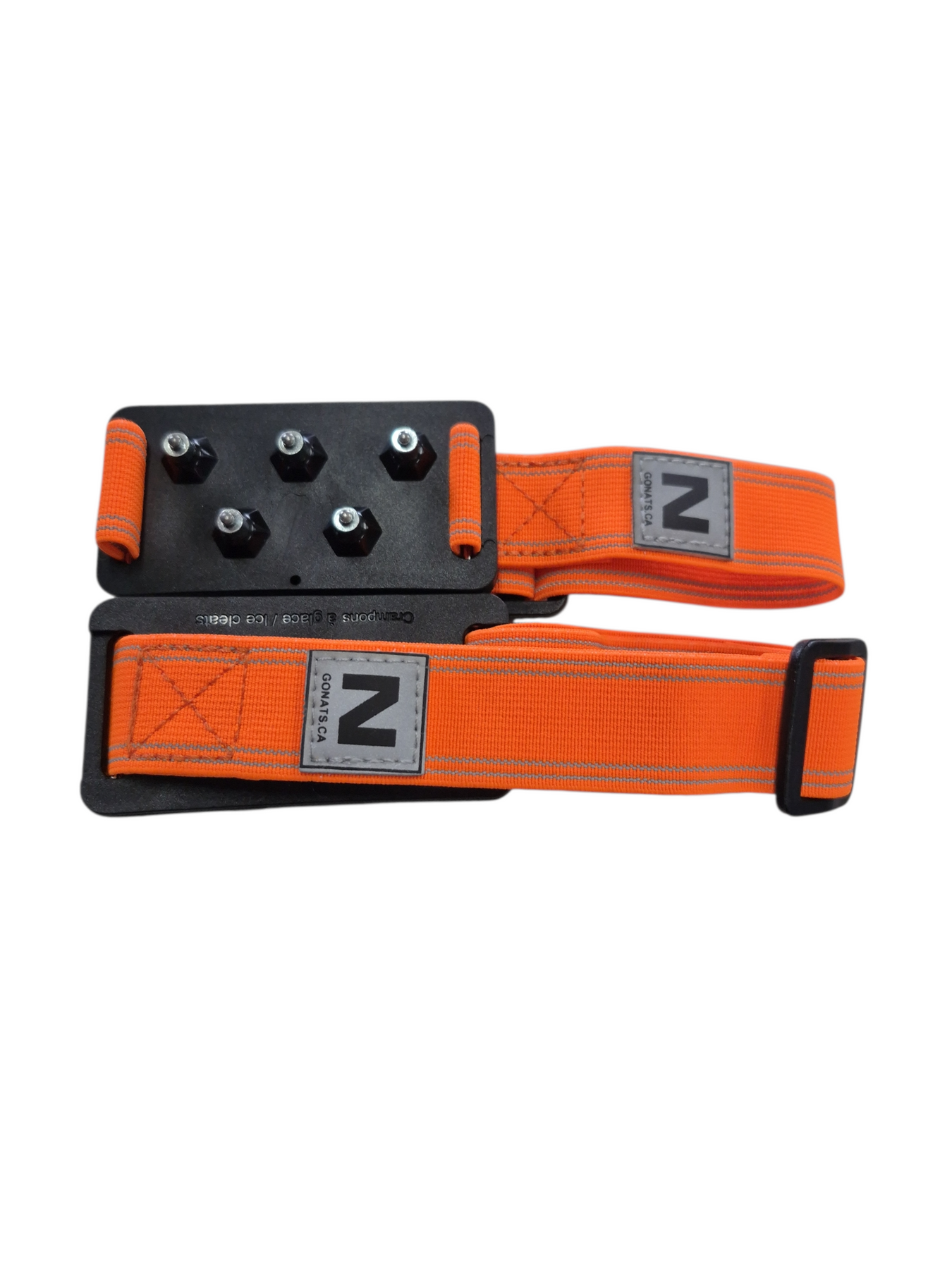 Tungsten anti-slip ice cleats, made with spark-resistant industrial quality. They're lightweight and resistant to both water and cold. The high-visibility orange adjustment strap is crafted from ultra-durable nylon and includes reflective stripes along with Nat's logo. You can wear them under the sole or over the boot, perfect for driving or indoor activities. They're specifically designed for utility and waterproof industrial boots. One size fits most.