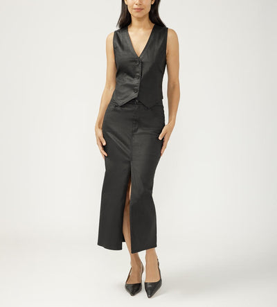 Silver Jeans Women's Coated Front-Slit Midi Skirt - Black