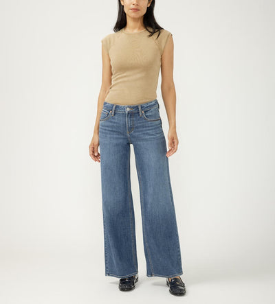 Silver Jeans Women's Suki Mid Rise Wide Leg Knit Flex Jeans - Broydon
