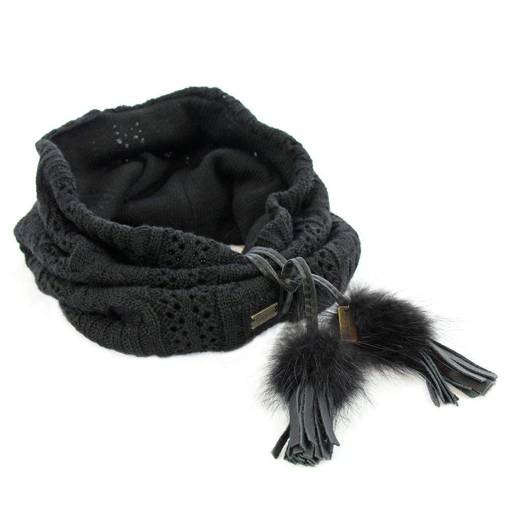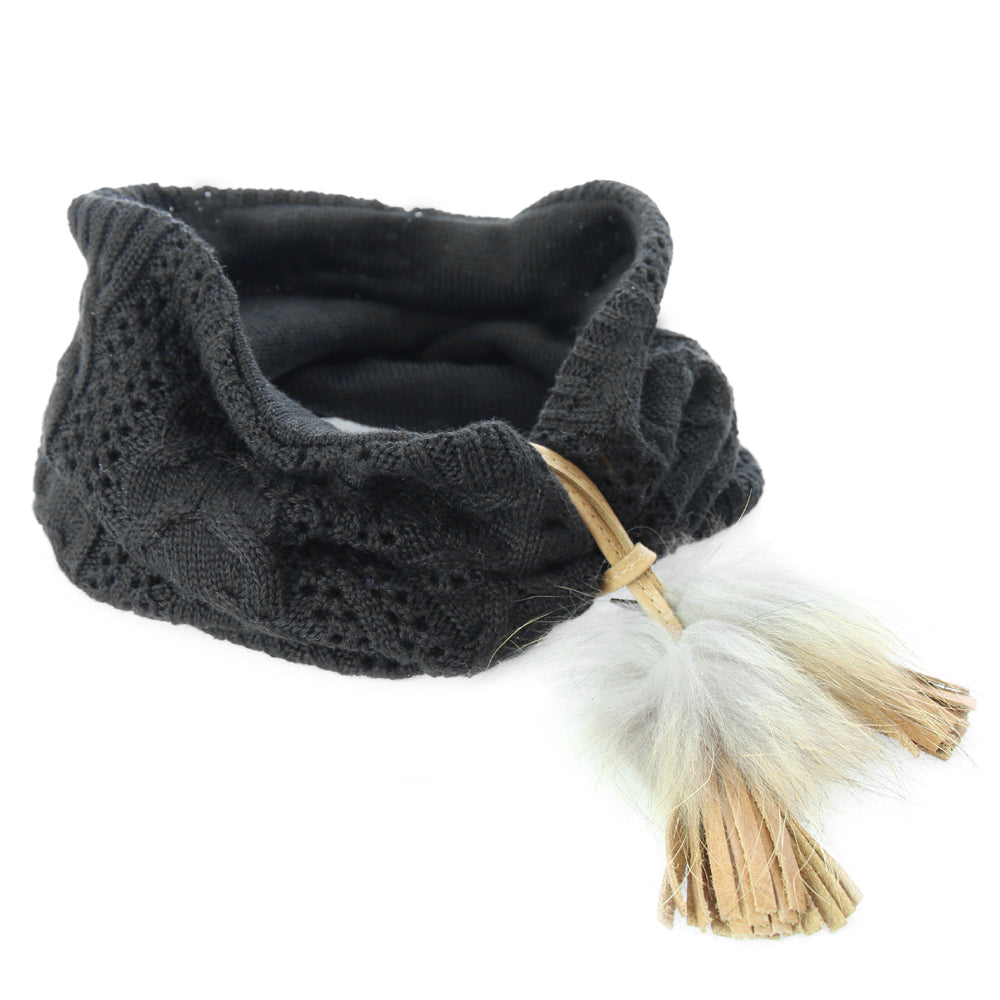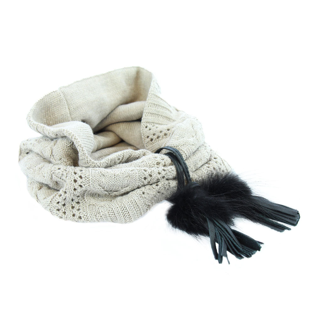 This fur trim looks great on any scarf. It has small fringes and cute fur pompoms that add style. Made from real leather and fur, it brings a fresh, classy vibe to your outfits.