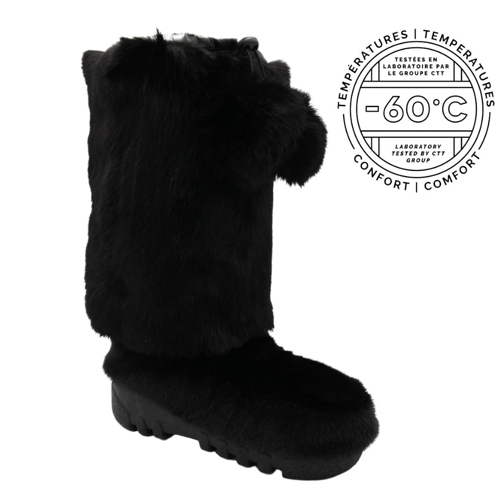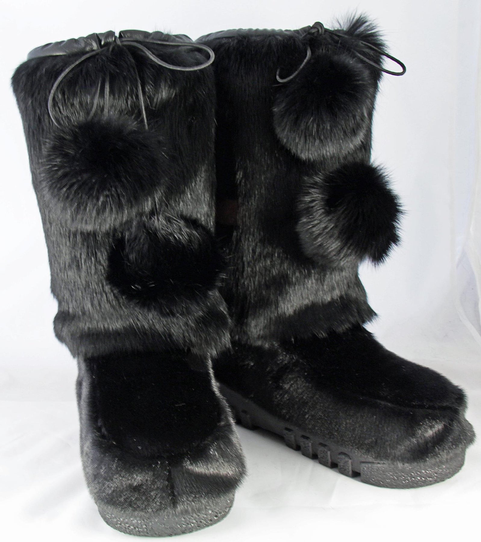 Fourrures(Furs) Grenier Mode Black Seal Skin and Black Rabbit FurBoots with Pompoms - Black/Black