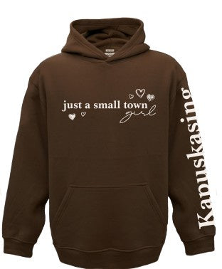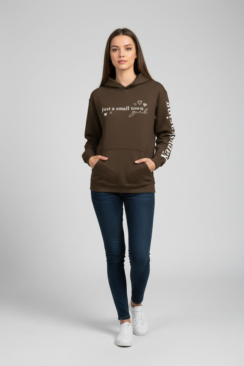KAPUSKASING WOMEN'S JUST A SMALL TOWN GIRL HOODIE - CHOCOLATE BROWN