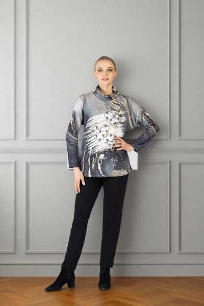 Cherish Women's Hearts Print Mock Neck Top - Grey