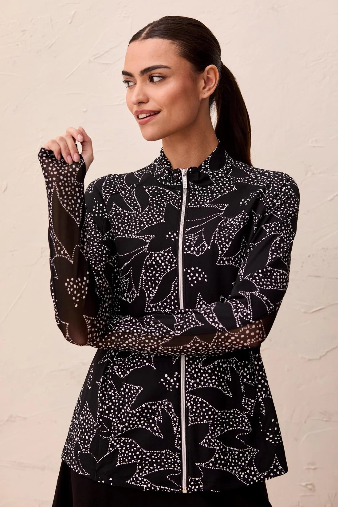 Tribal Women's Printed Mock-Neck Zip-up Cardigan - Black Floral
