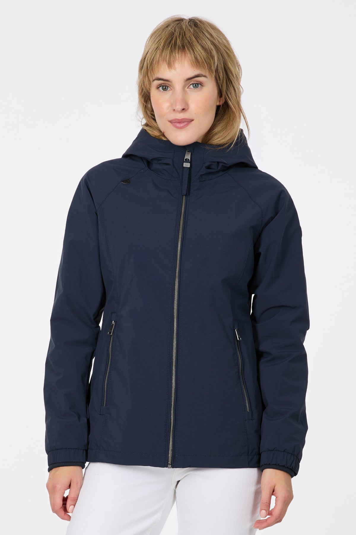 The Dizzea Jacket by Ragwear blends city style with outdoor smarts. Clean lines pair well with jeans, leggings, or dresses. Use it for errands, walks, or quick trips outside. Tough fabric holds off rain at 11,000 mm. Breathability hits 3,000 g/m²/24h for comfort in shifting weather. Slim cut flatters your shape. Back extends a bit for more cover. Hood and hem have elastic cords. Cuffs use knit with inner bands to block wind. Enjoy two outer pockets plus one inner zip pocket. Light, dry, and sharp—perfect for wild days.