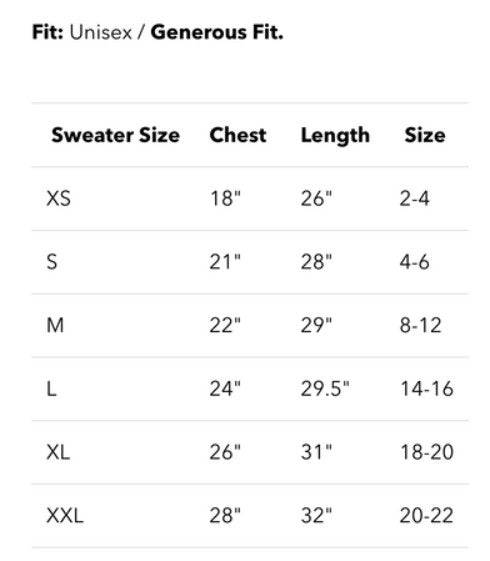 The sweatshirt has a more generous fit, so if you're between sizes, we suggest going a size down.