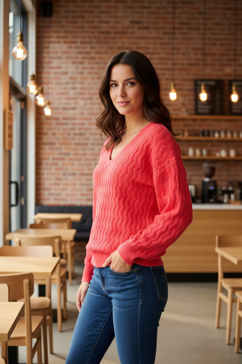 The GARCIA sweater embodies easygoing style with its long sleeves, comfy v-neckline, and stunning intarsia design, making it ideal for casual outings or chill days at home.