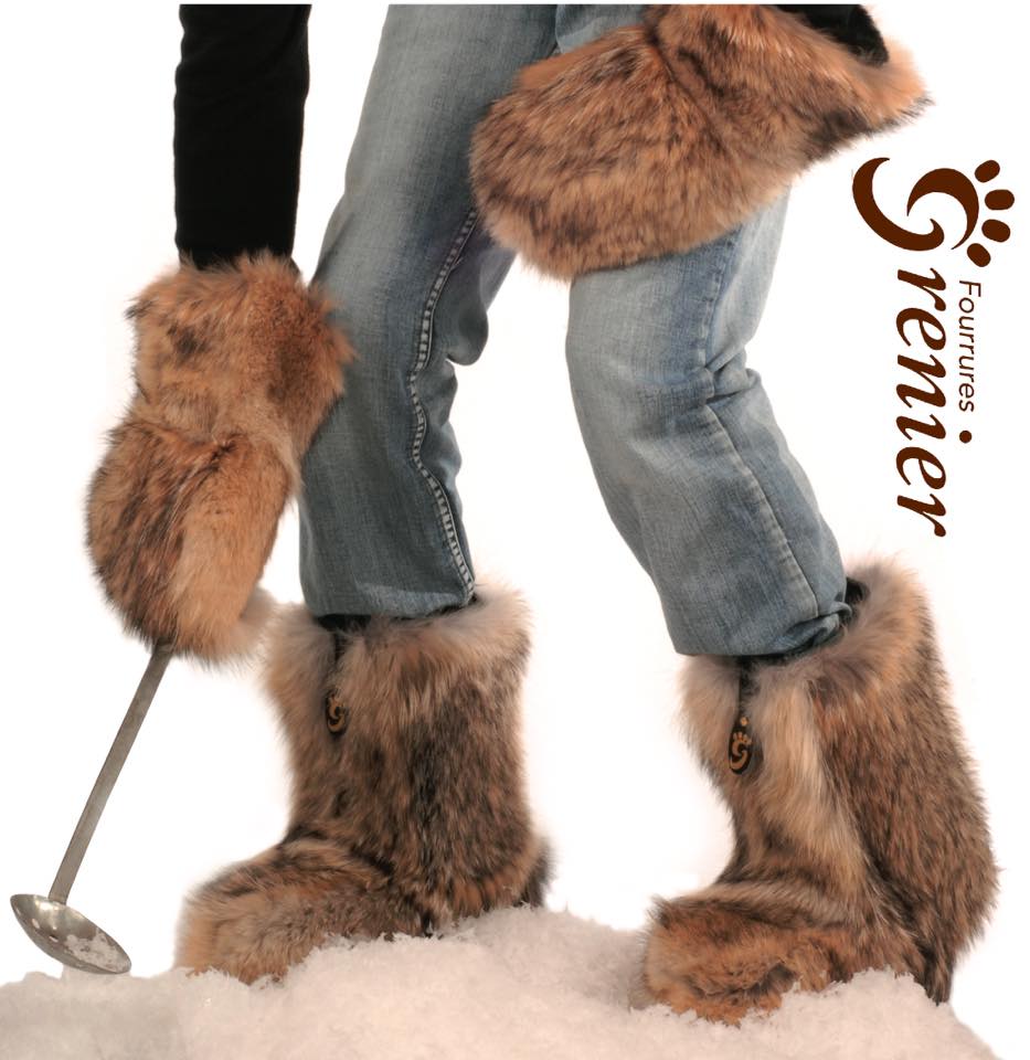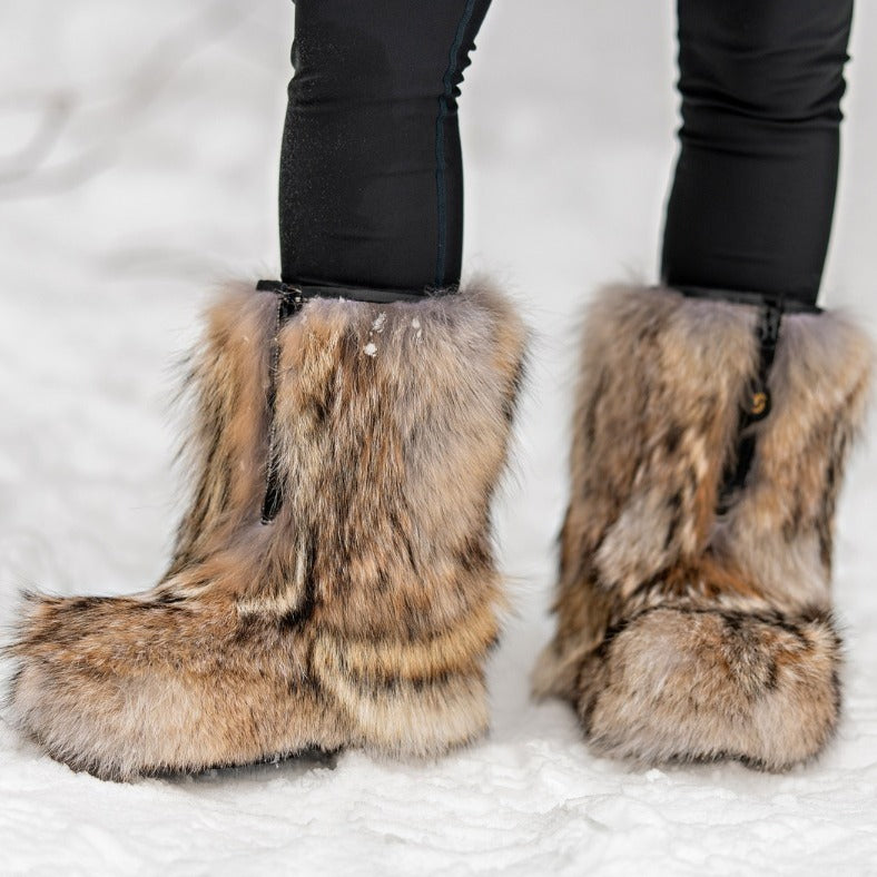 These cozy coyote fur boots are essential for winter fun thanks to their incredible warmth. This timeless design is built to handle the Canadian chill, and you'll love how straightforward it is. Looking stylish in winter boots has never been simpler!